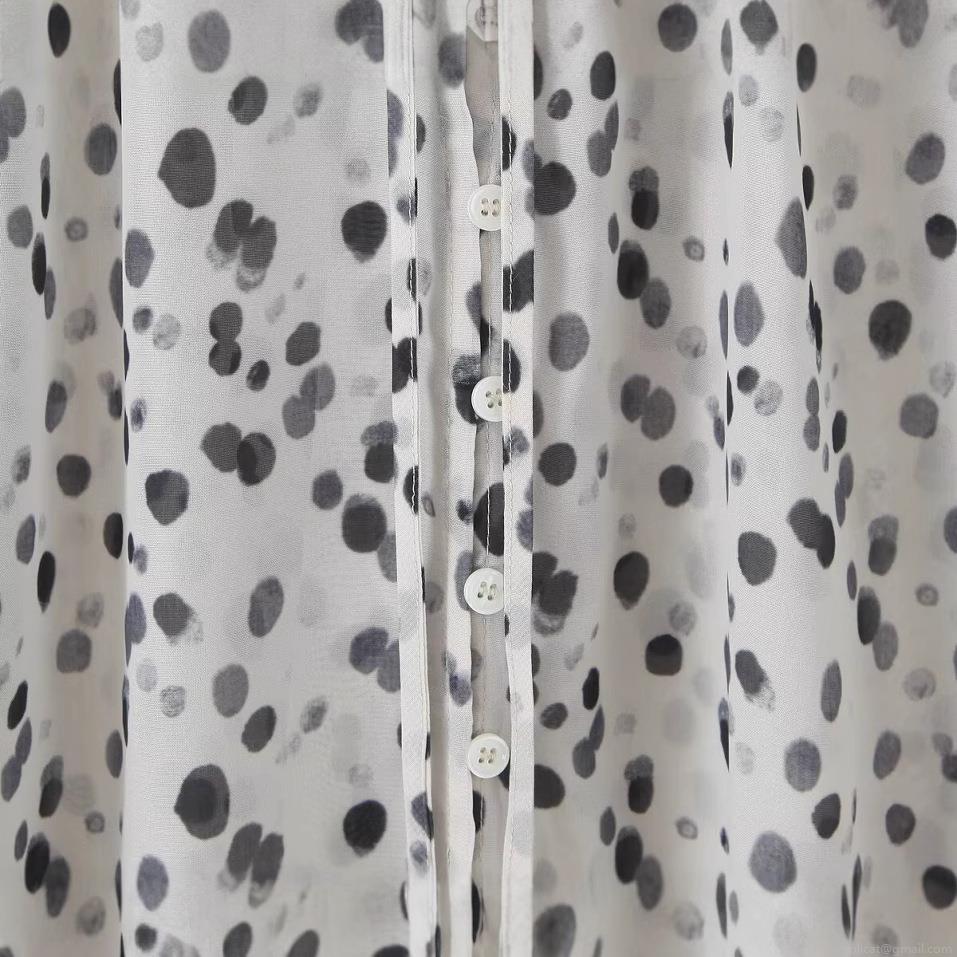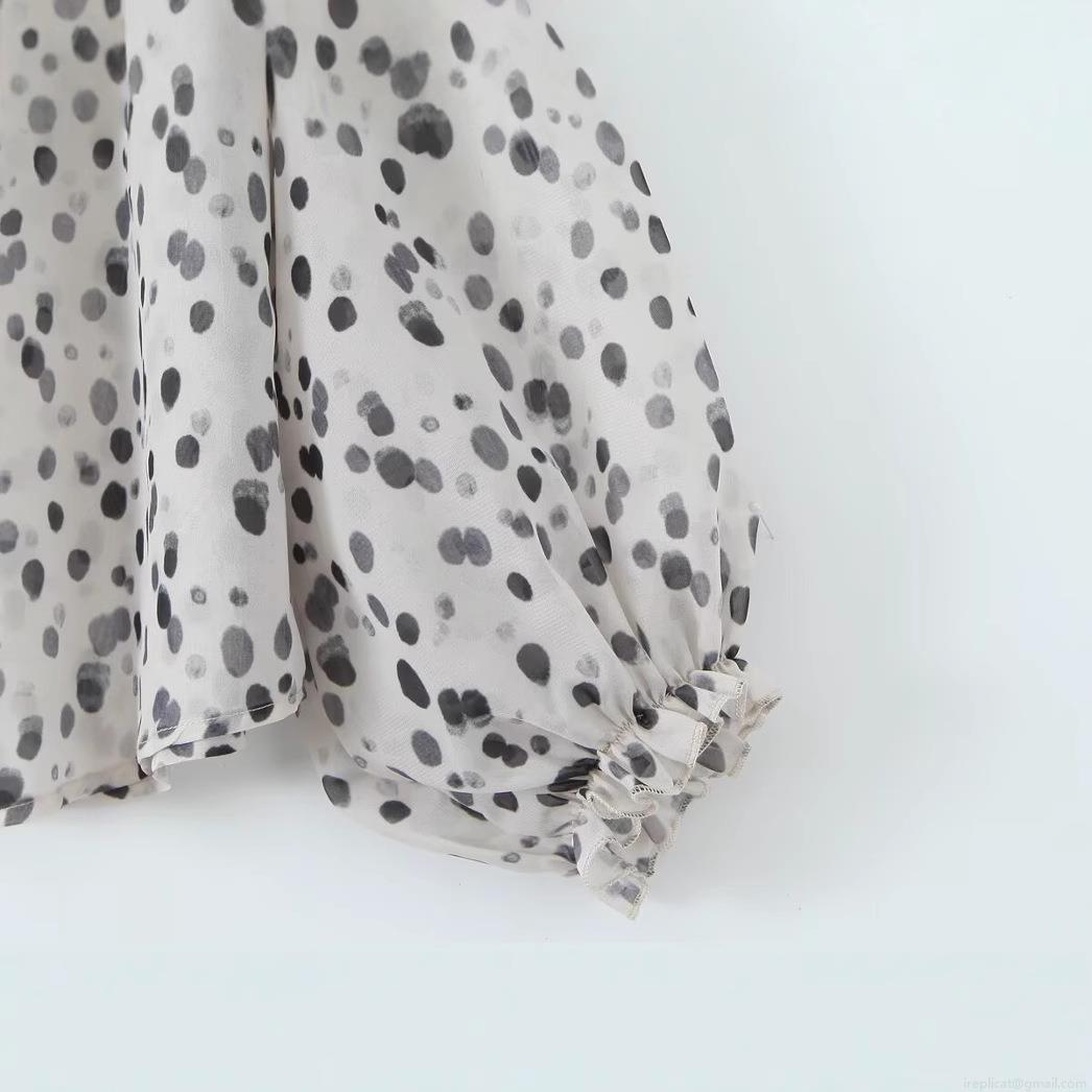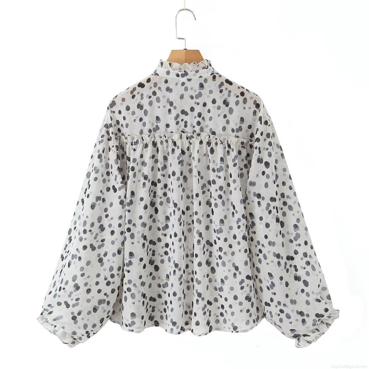 Polka Dots, Wood Ear Edge, Lace, Stand-up Collar, Single-breasted, Lantern Sleeves, Irregular Ink Dots