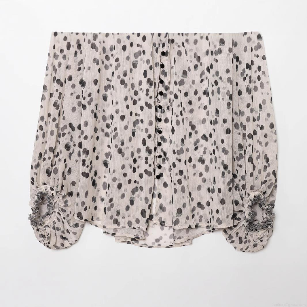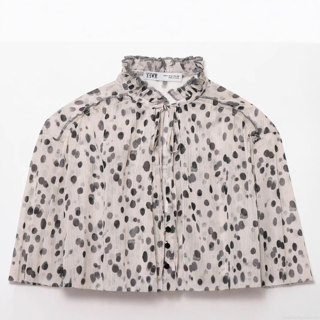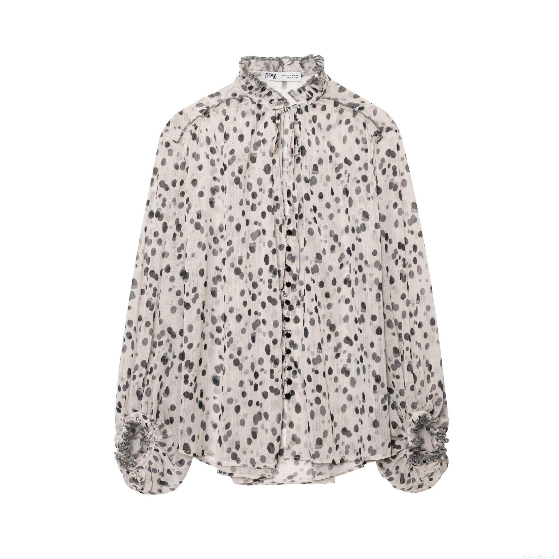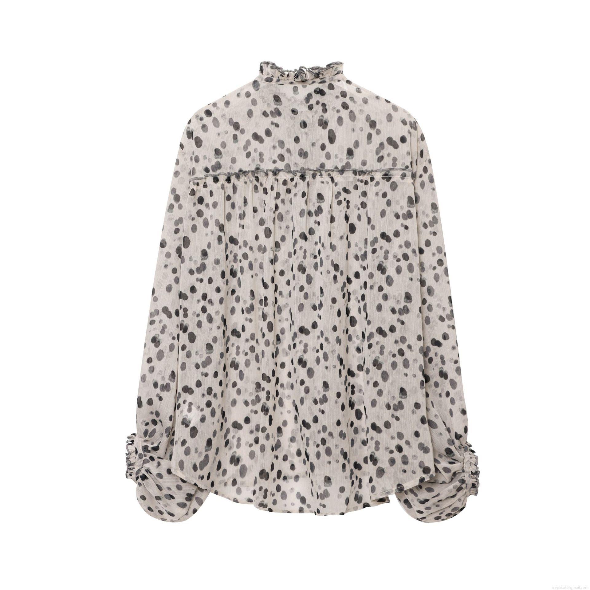 • Women's Polka Dot Chiffon Blouse Long Sleeve Ruffle Stand Collar Button Down Shirt Casual Lightweight Tops For Office Daily Ladies Sweet Style