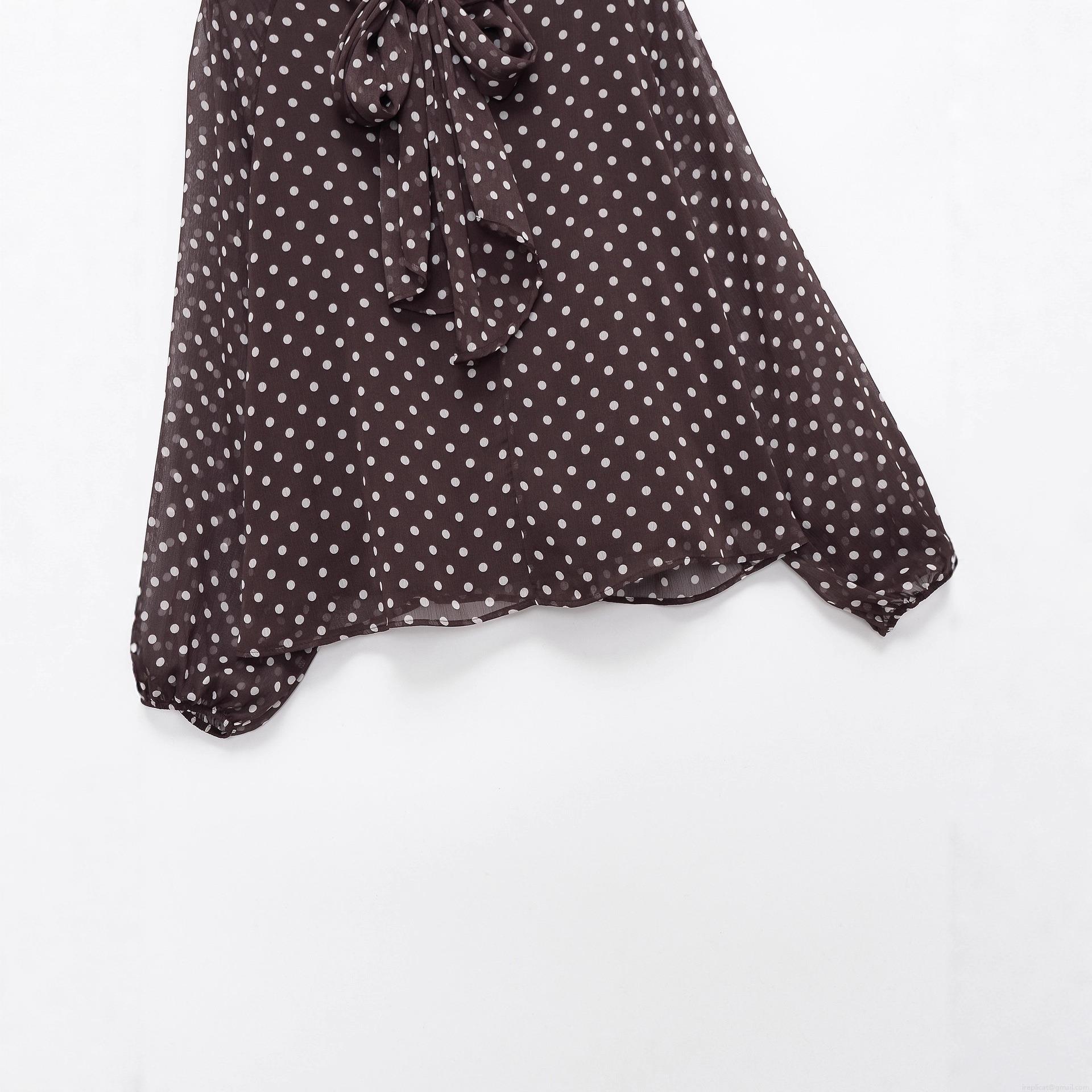 • Women's Polka Dot Chiffon Blouse Retro Bow Tie Neck Long Lantern Sleeve Lightweight Polyester Elegant Shirt Top For Daily Commute Streetwear