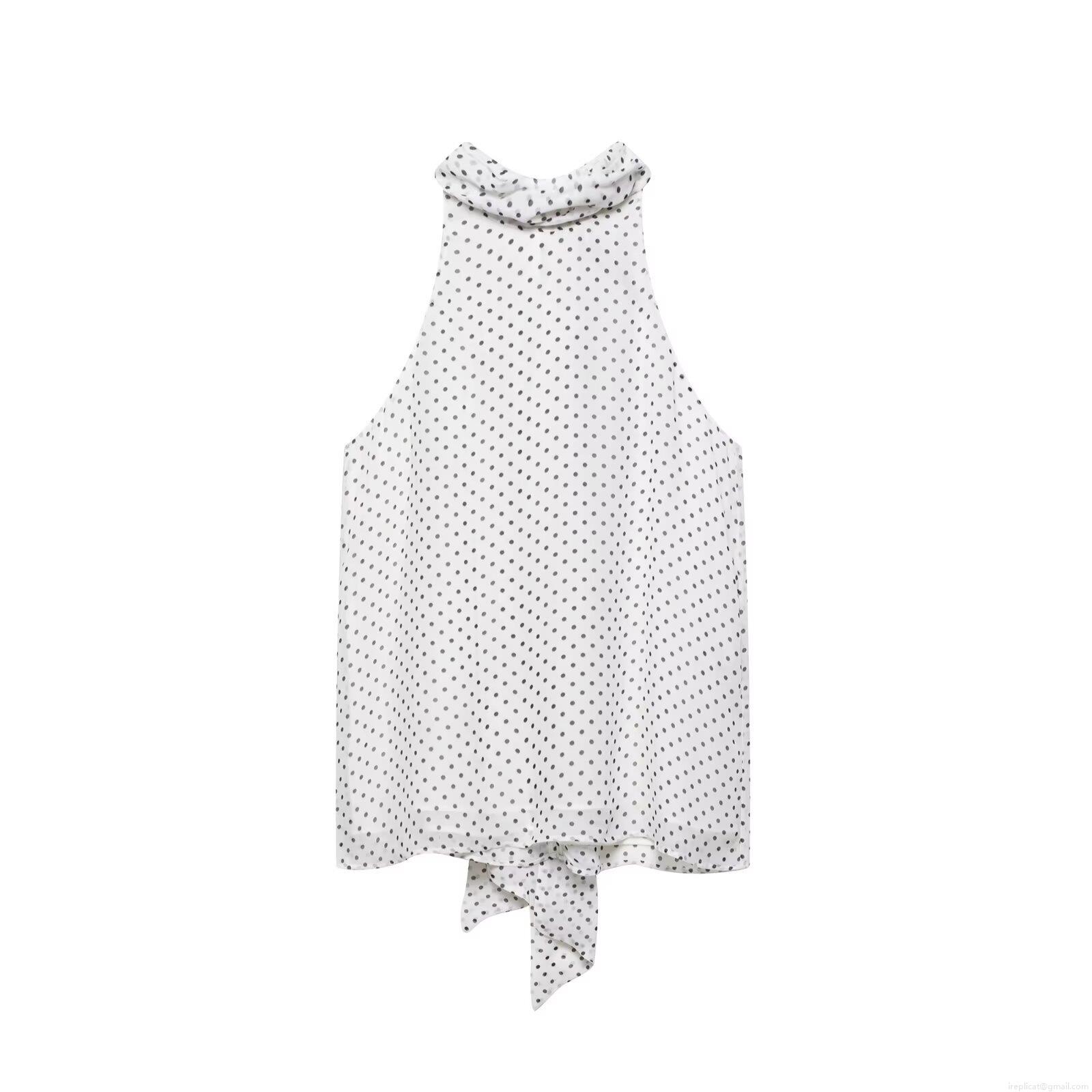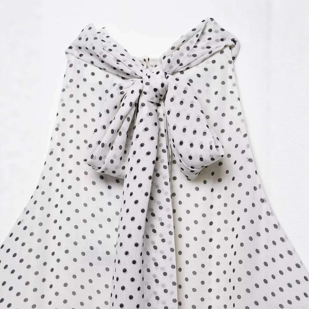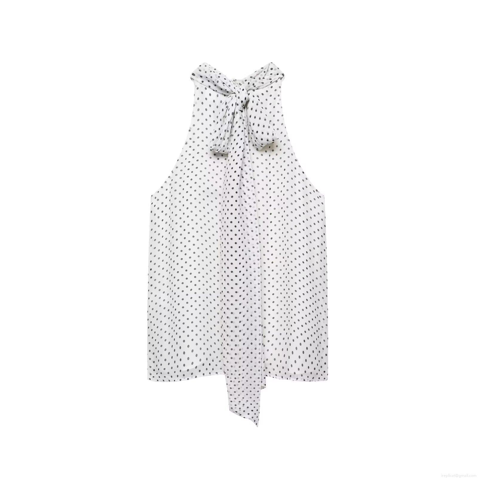 • Women's Polka Dot Halter Neck Sleeveless Polyester Chiffon Top Elegant Bow Tie Summer Blouse Casual Streetwear For Ladies Lightweight Breathable