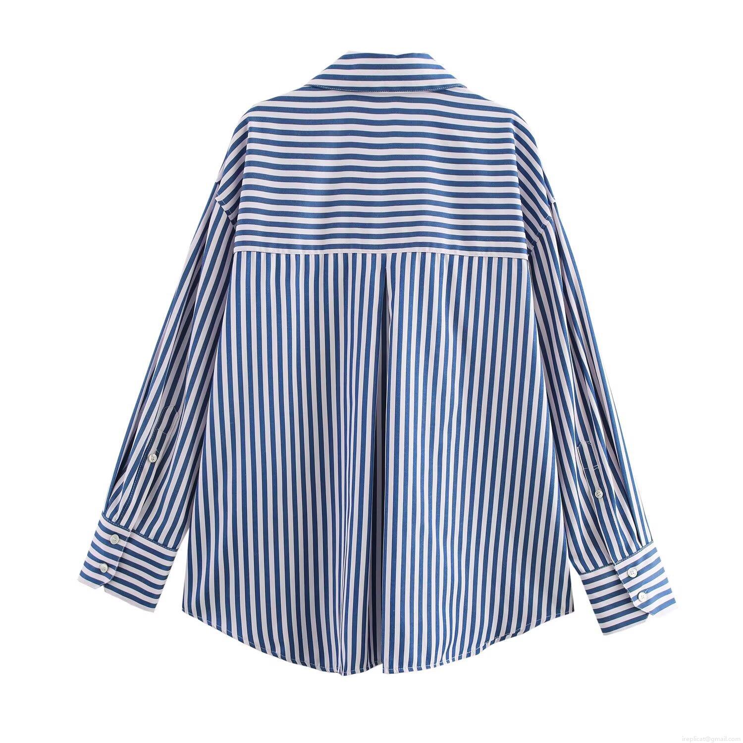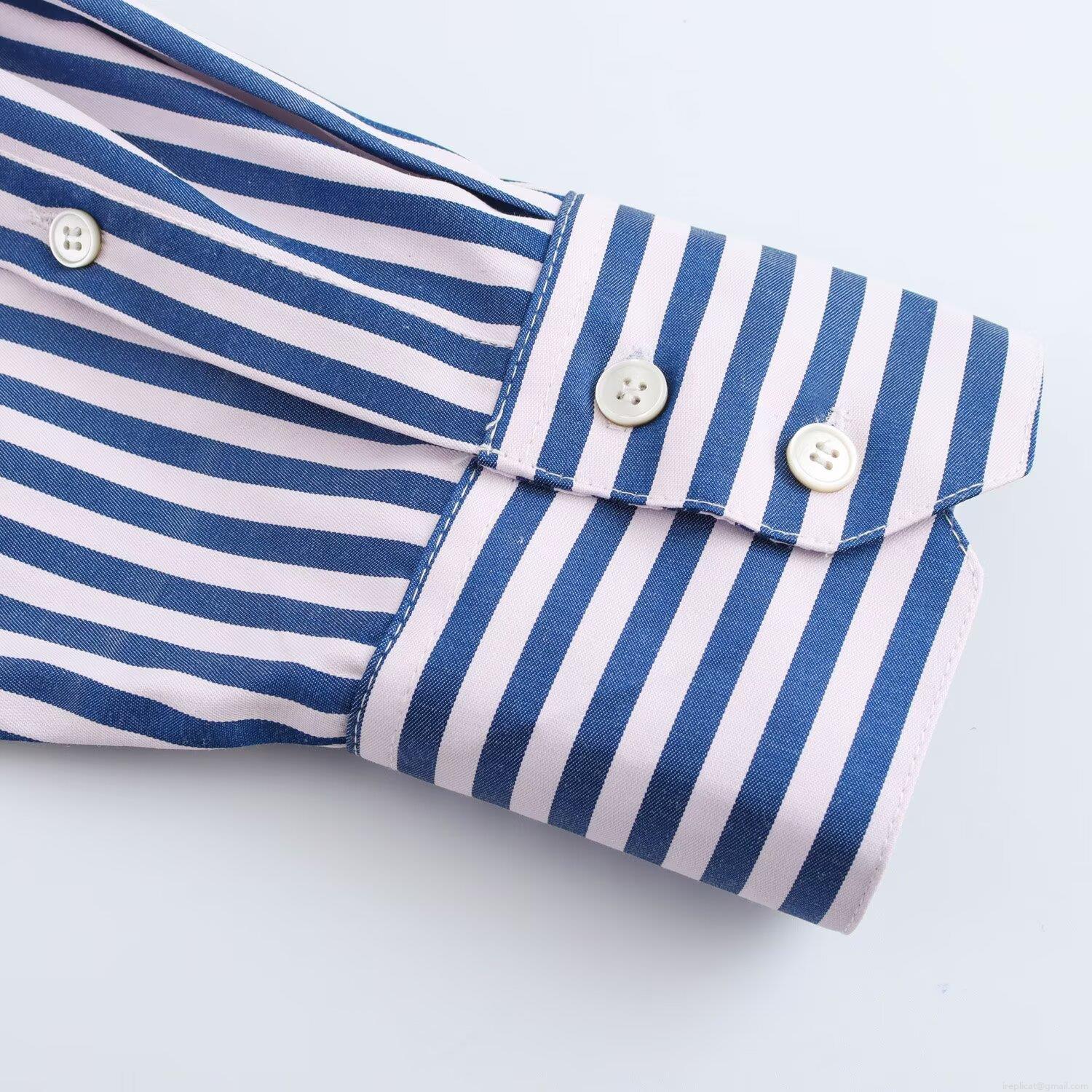 • Women's Poplin Cotton Casual Striped Shirt Long Sleeve Lapel Loose Blouse Button Down Top For Daily Office Lady Spring Autumn