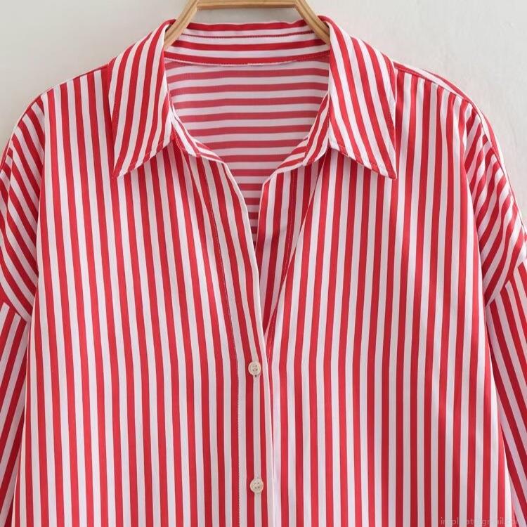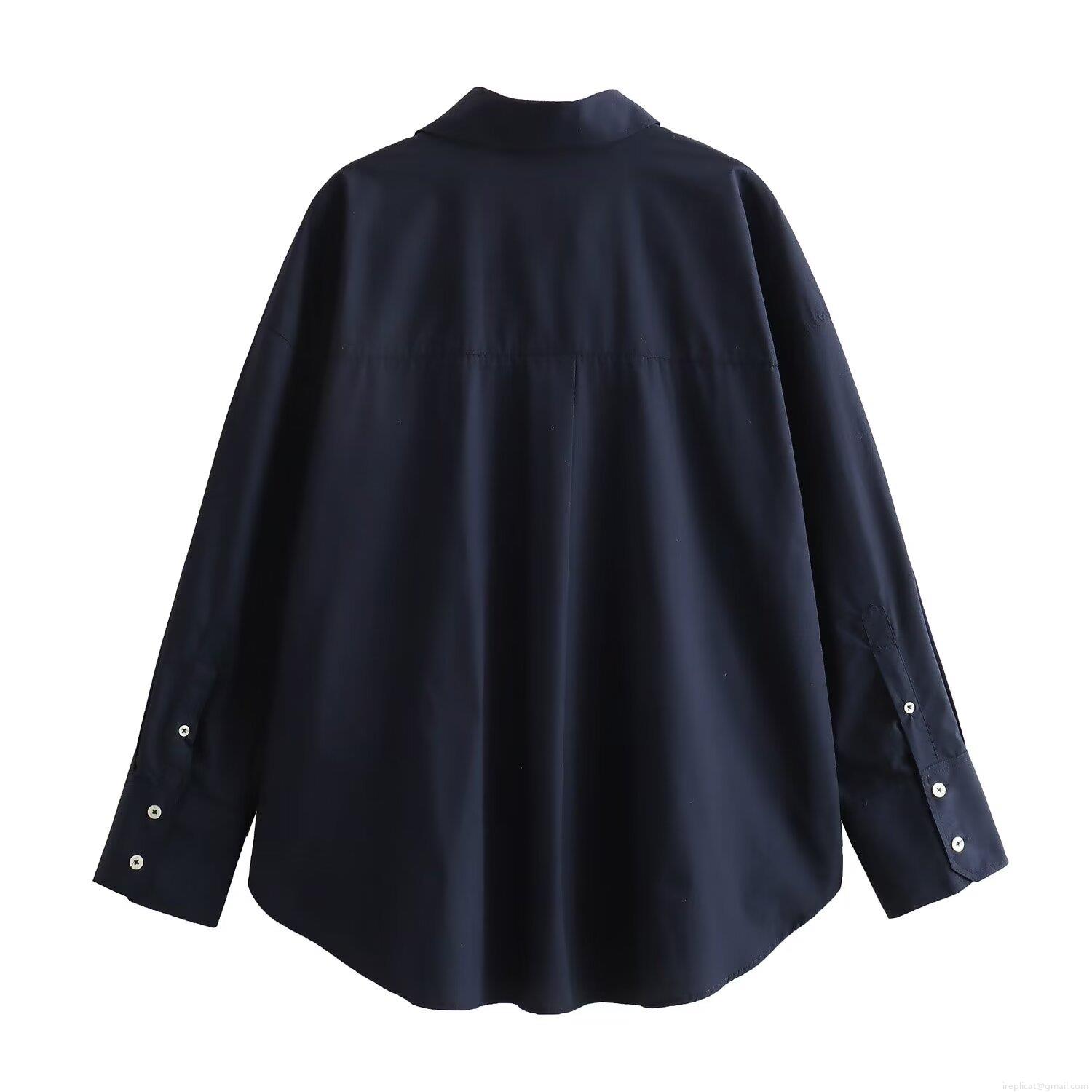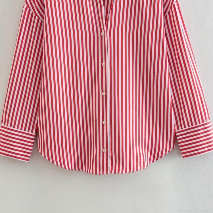 • Women's Poplin Cotton Long Sleeve Shirt Lapel Loose Fit Solid Color Striped Blouse For Casual Daily Commute Minimalist Top