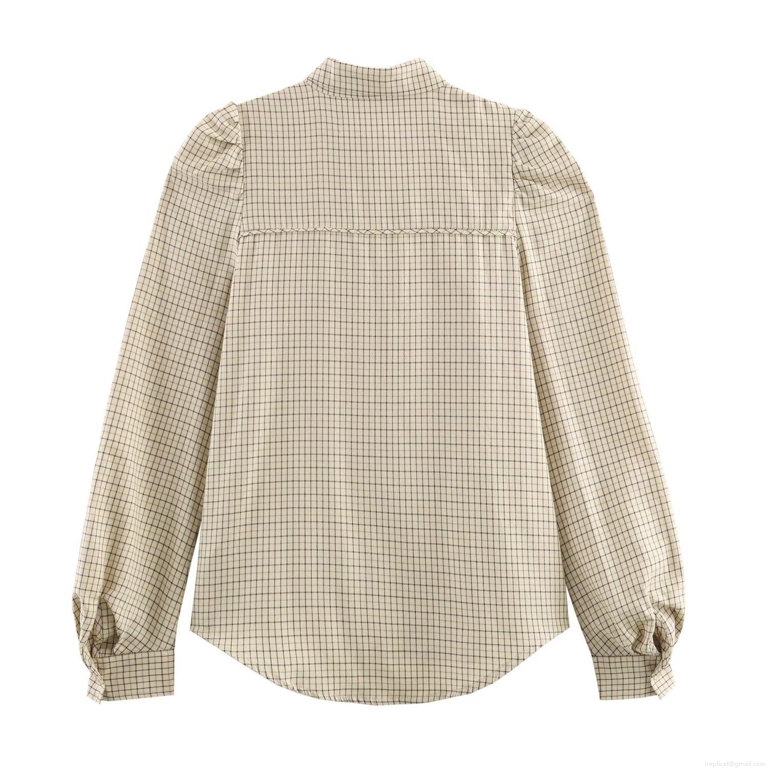 • Women's Preppy Style Plaid Blouse With Bow Tie Puff Sleeve Polyester Long Sleeve Loose Shirt For Daily School Sweet Top