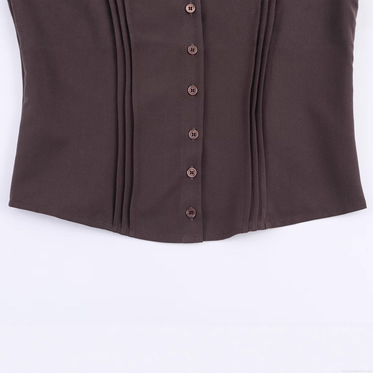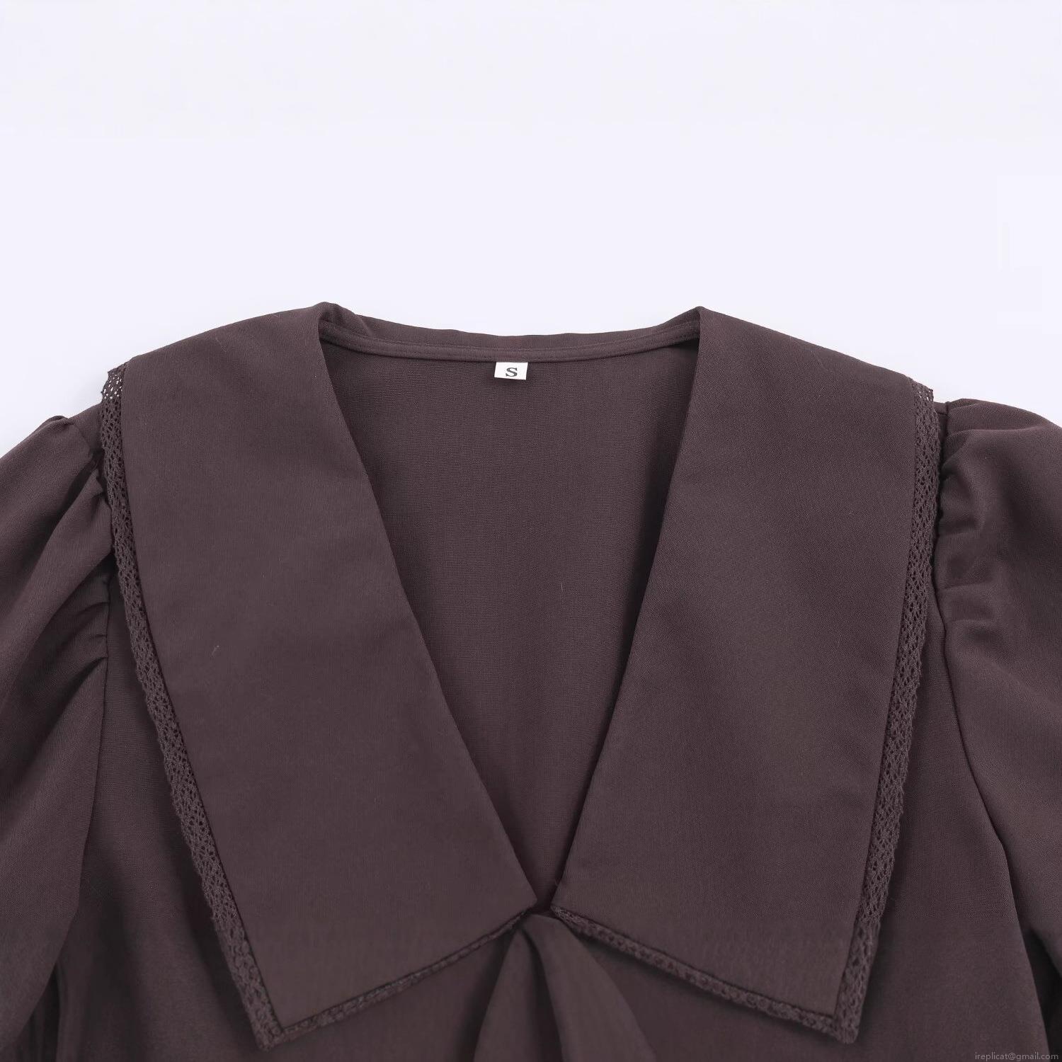 • Women's Retro Coffee Polyester Blouse Elegant Bubble Sleeve Lace Trim Peter Pan Collar Button Down Shirt For Daily Wear Women Fashion Tops