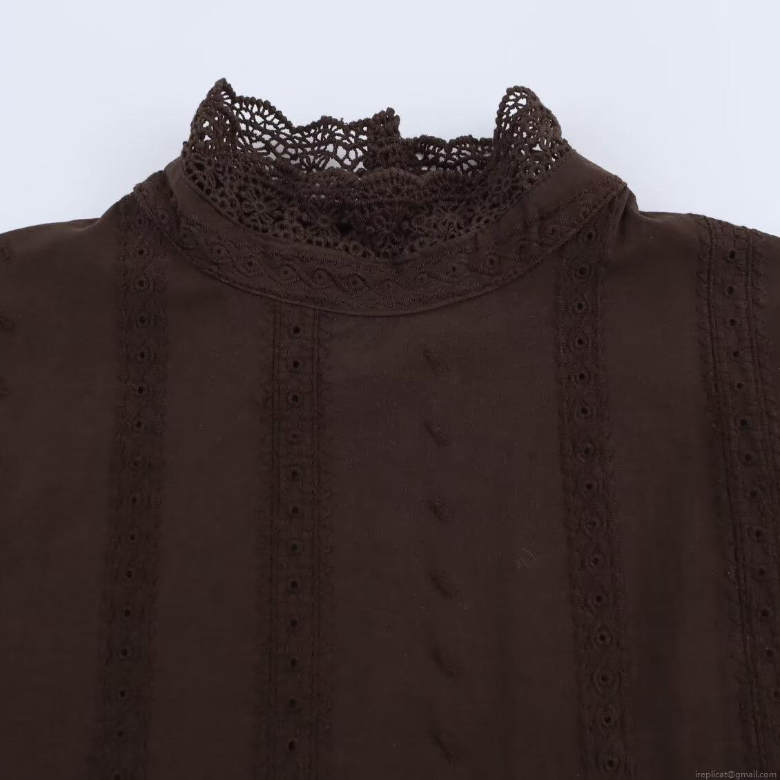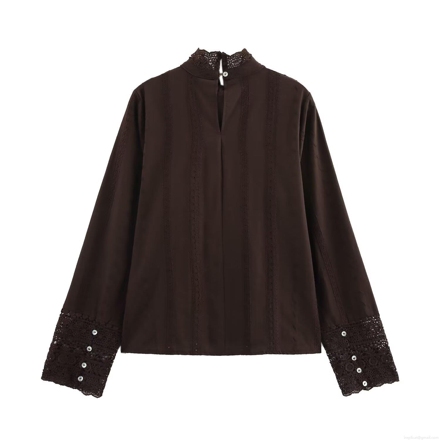 • Women's Retro Elegant Lace Embroidery Blouse Long Sleeve Stand Collar Cotton Blend Pullover Top For Casual Daily Wear High Quality Women Clothing