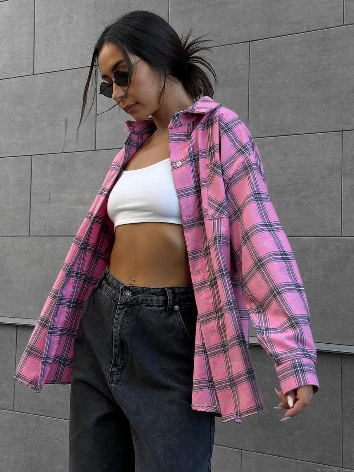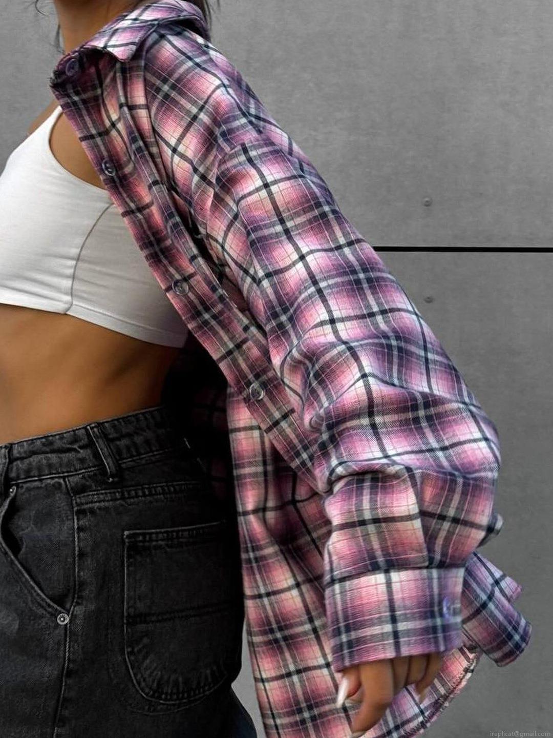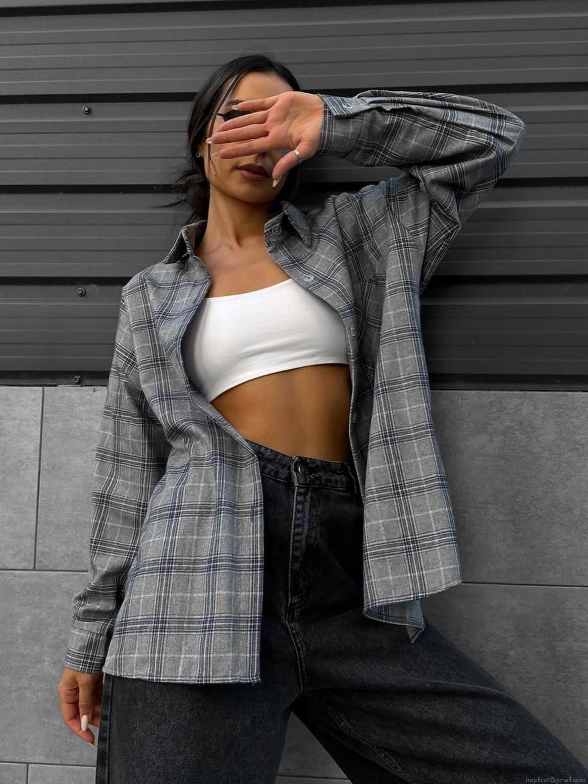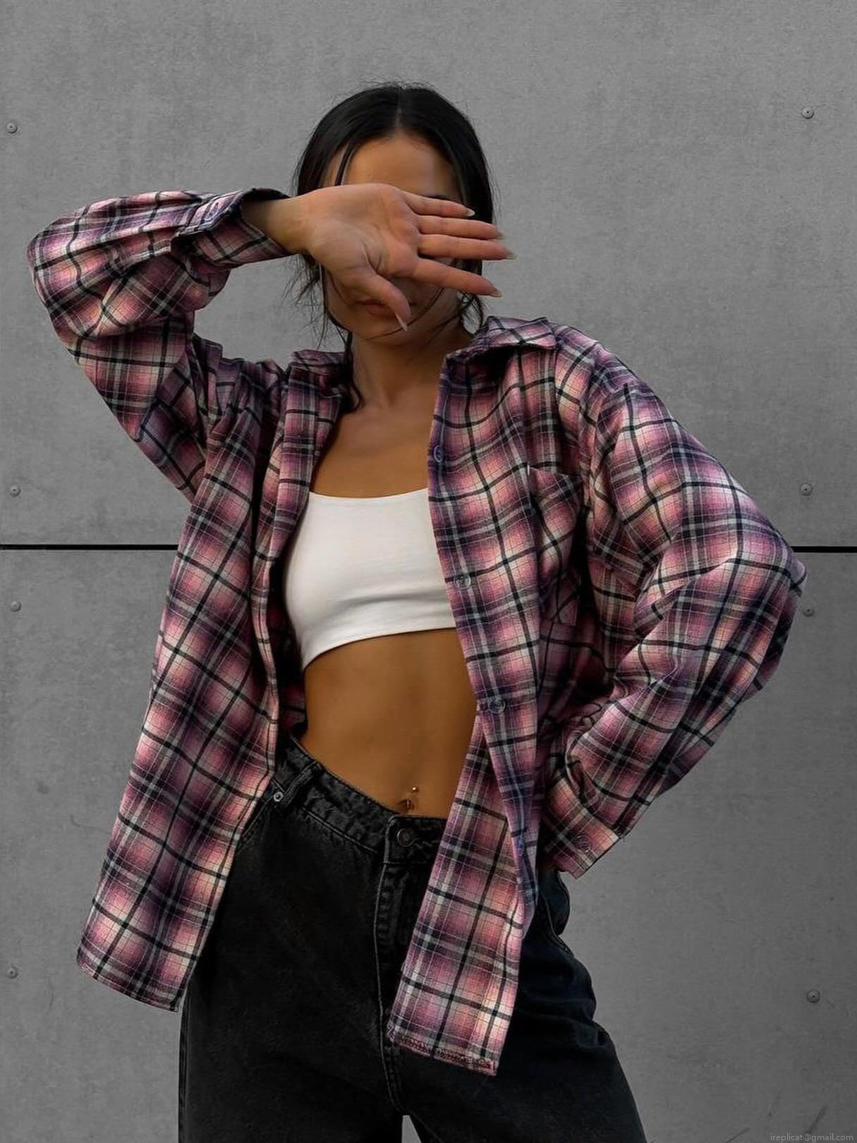 • Women's Retro Plaid Cotton Blend Shirt Long Sleeve Lapel Button Down Loose Fit Blouse For Casual Streetwear Autumn Tops