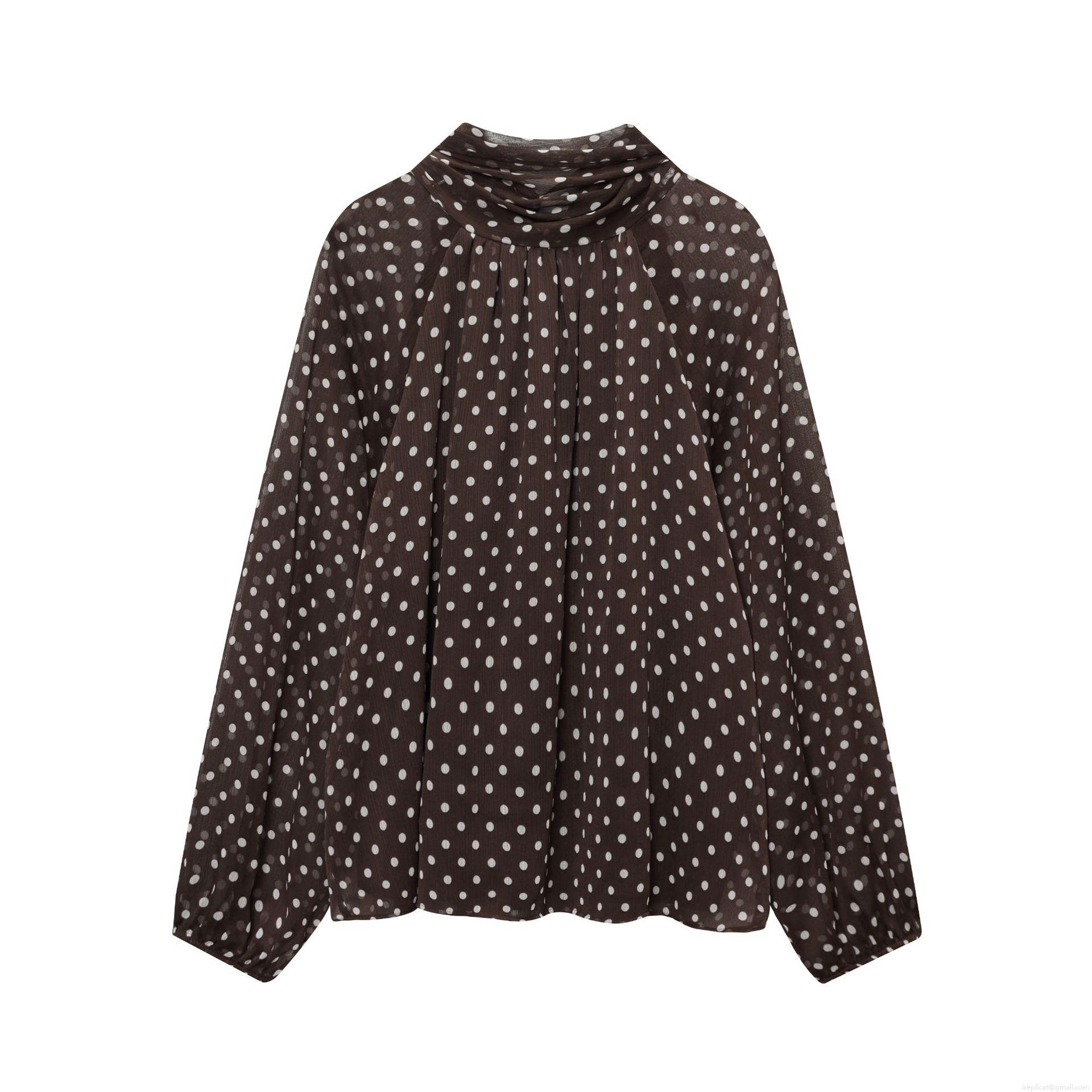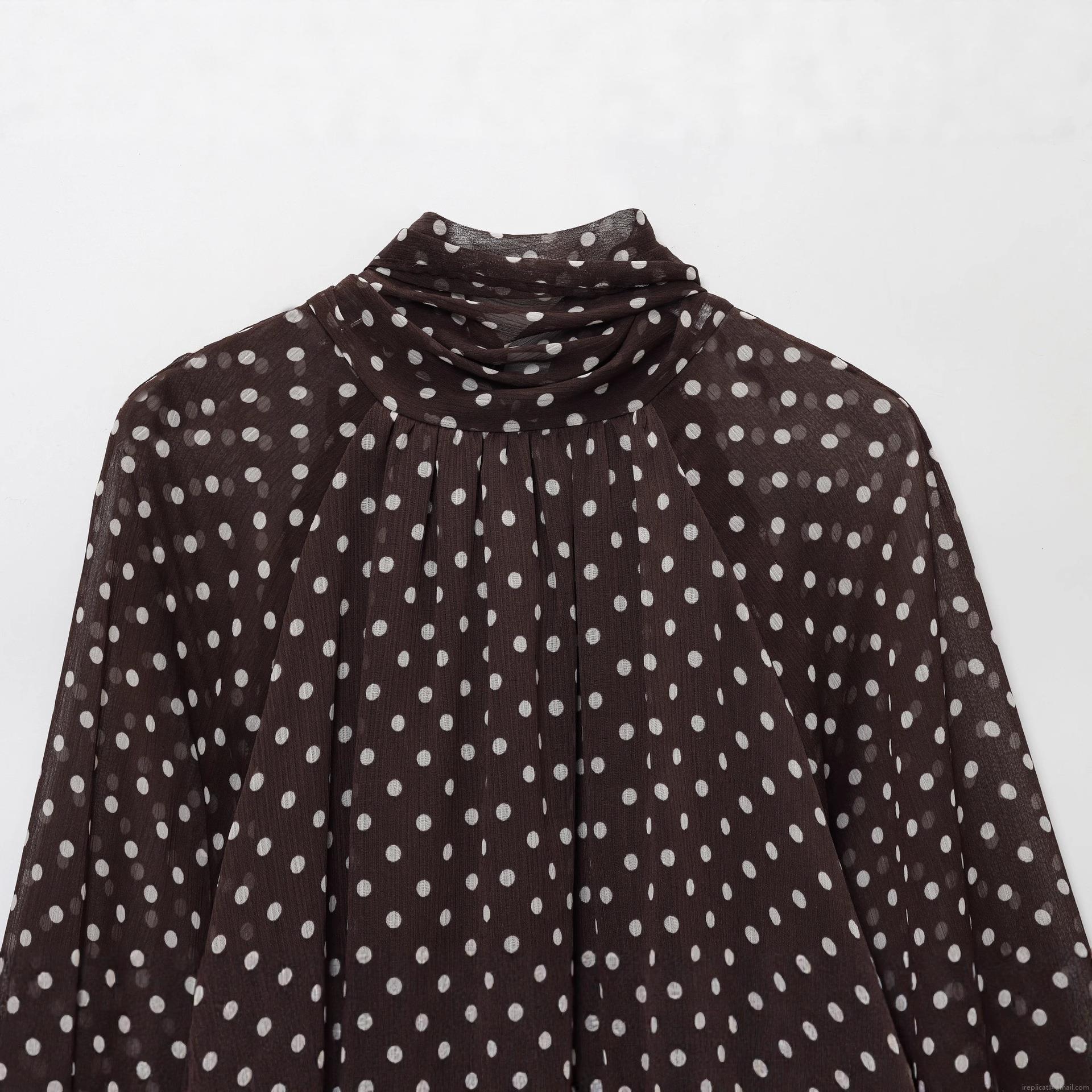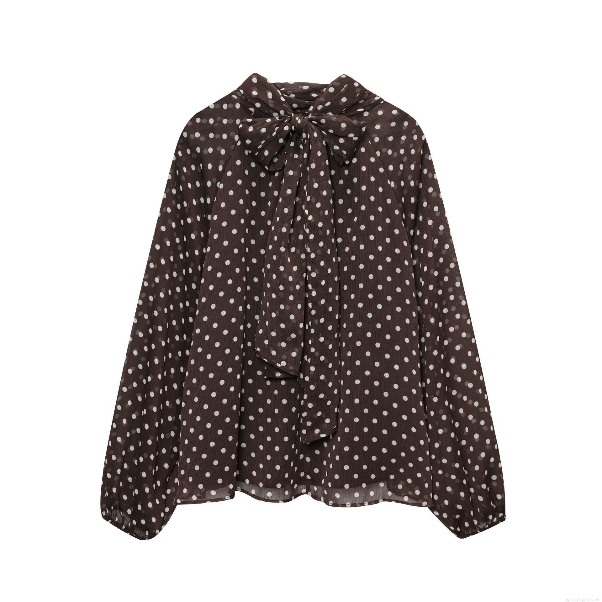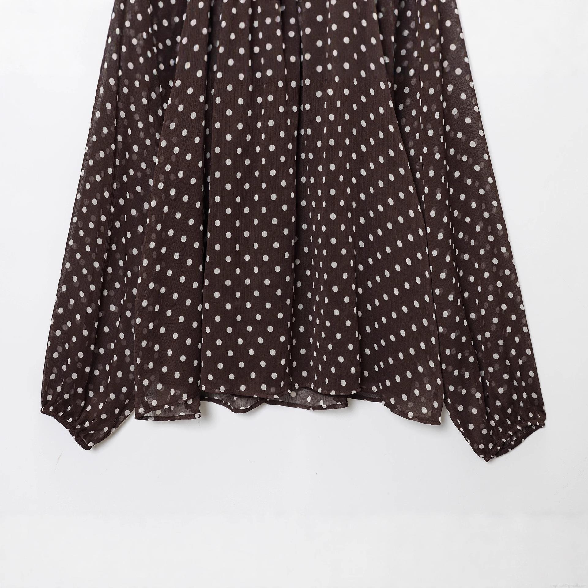 • Women's Retro Polka Dot Chiffon Blouse With Big Bow Tie Neck Long Lantern Sleeve Pullover Shirt Elegant Casual Top For Office Dating
