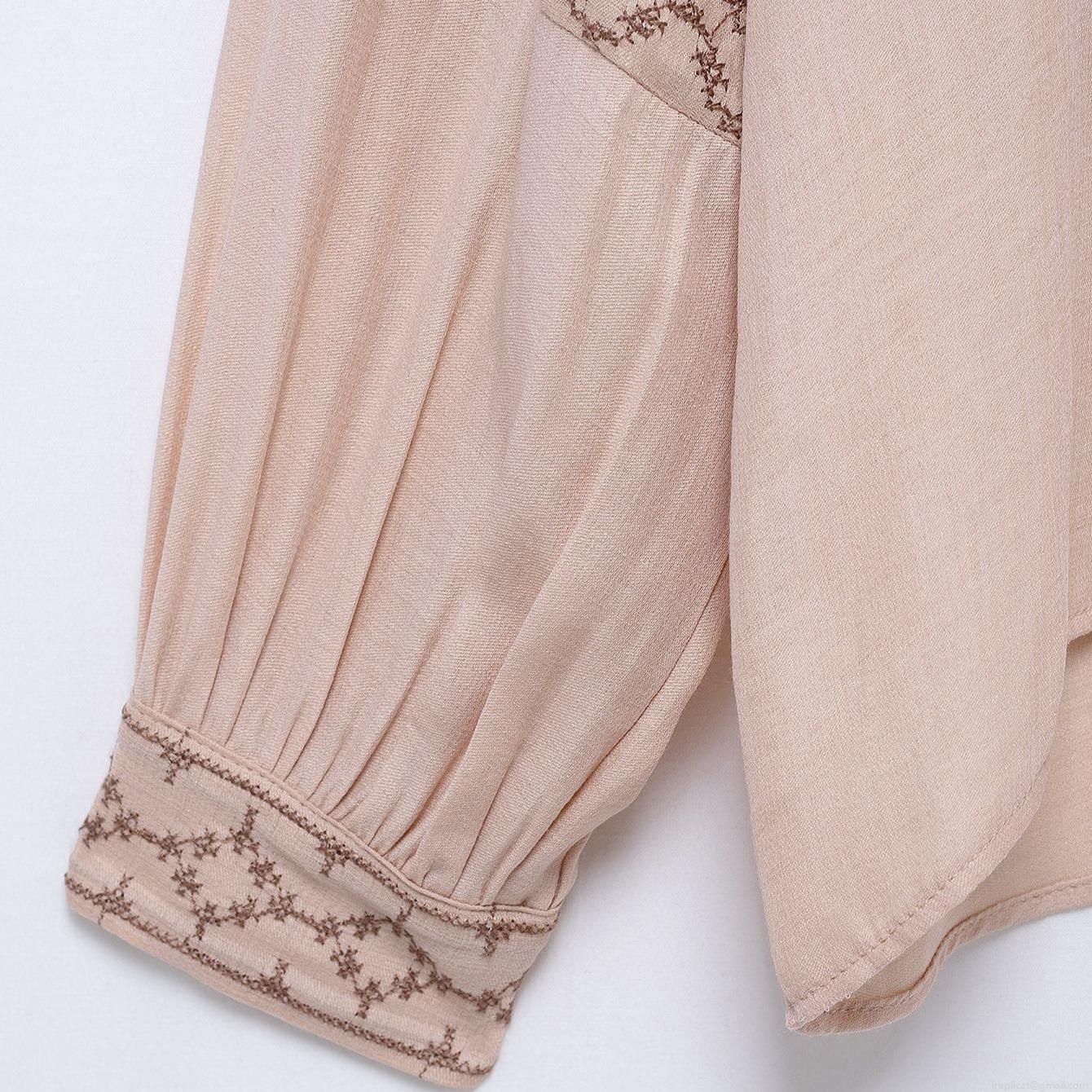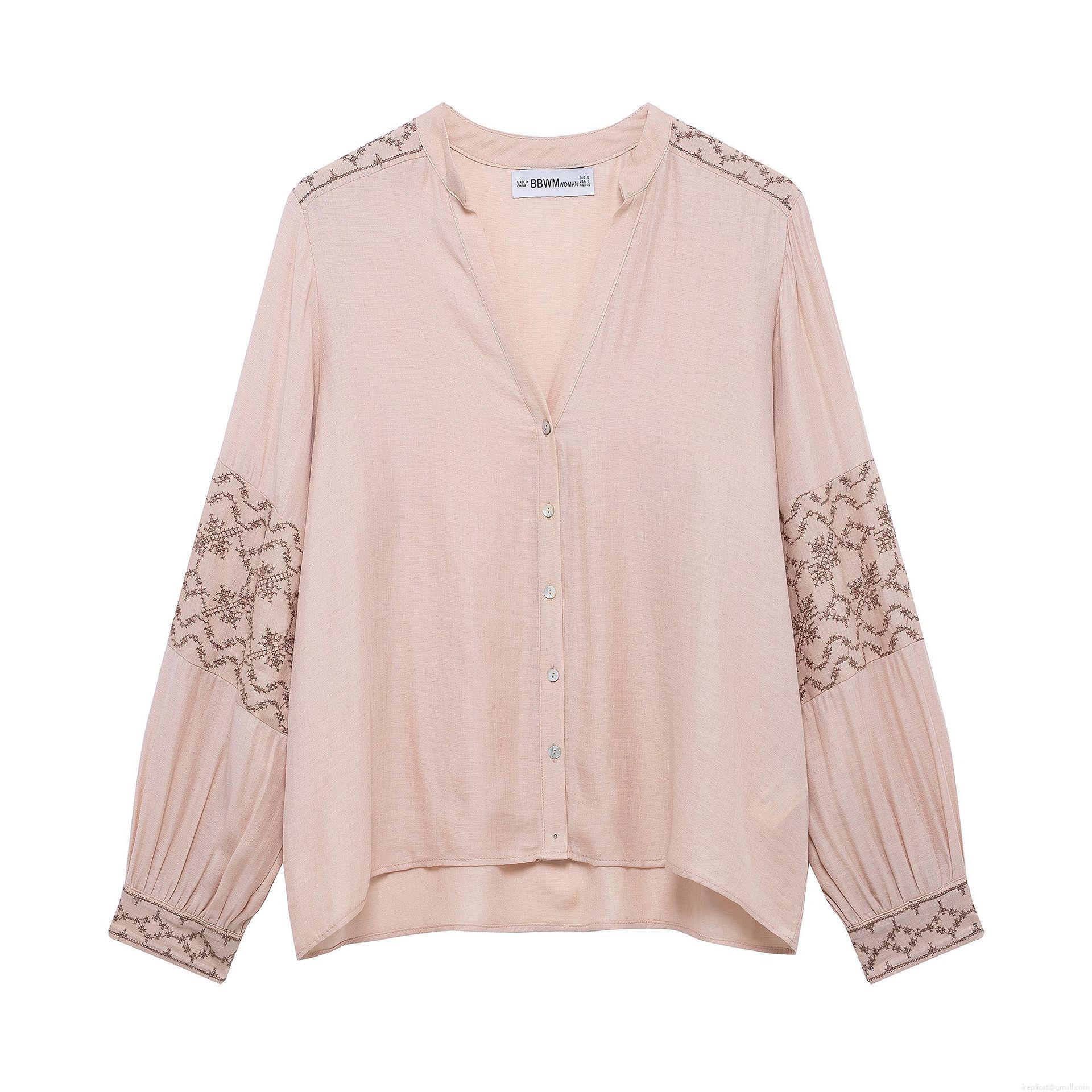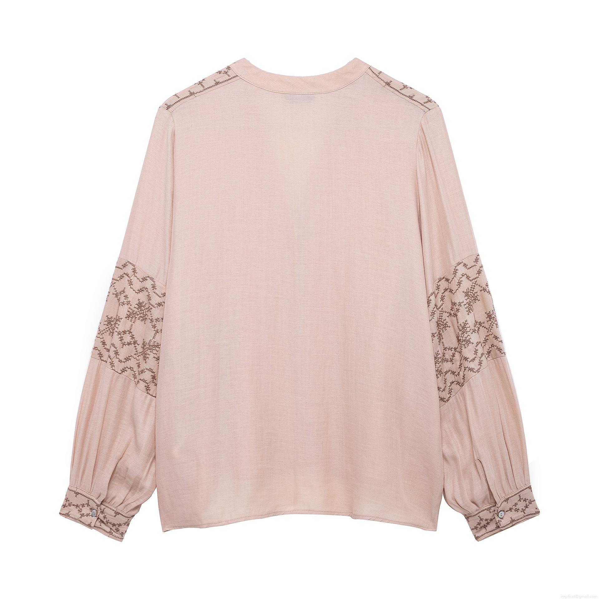 • Women's Retro V-Neck Long Sleeve Blouse Vintage Floral Embroidery Loose Fit Polyester Top Elegant Casual Shirt For Ladies Spring Autumn