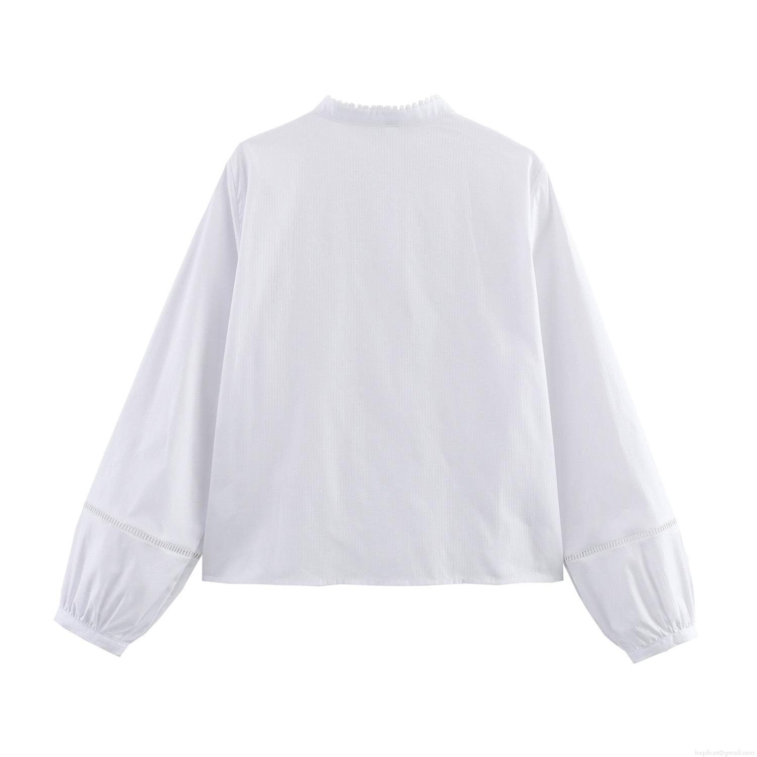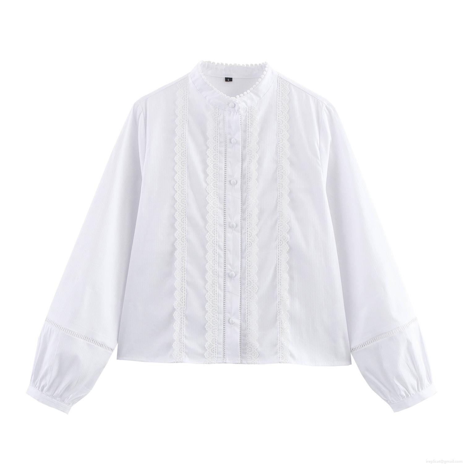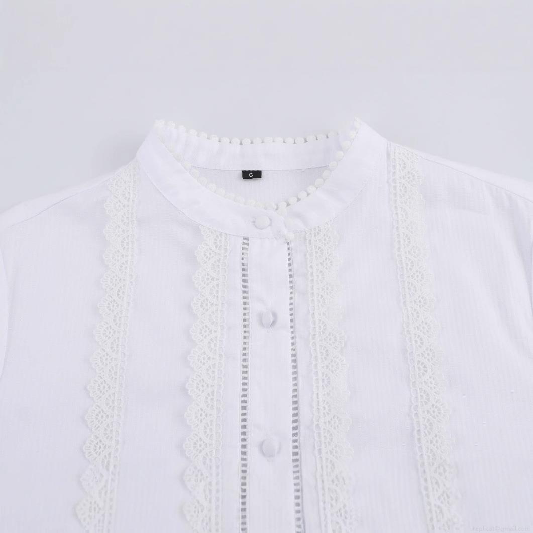 • Women's Romantic White Lace Trim Long Sleeve Shirt Elegant Cotton Blend Button Up Blouse For Daily Dating Party French Style Tops