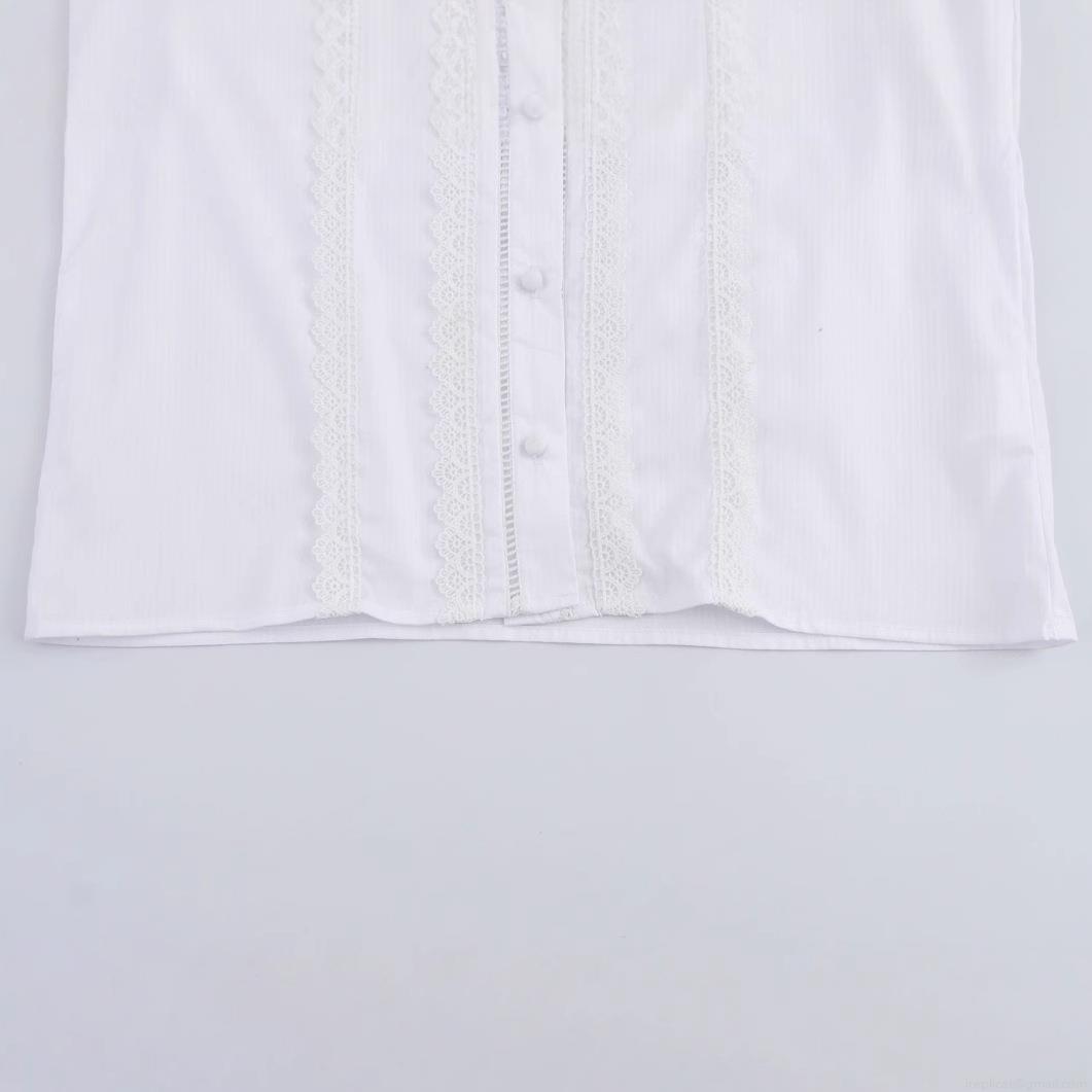 Women's Romantic White Lace Trim Long Sleeve Shirt Elegant Cotton Blend Button Up Blouse For Daily Dating Party French Style Tops