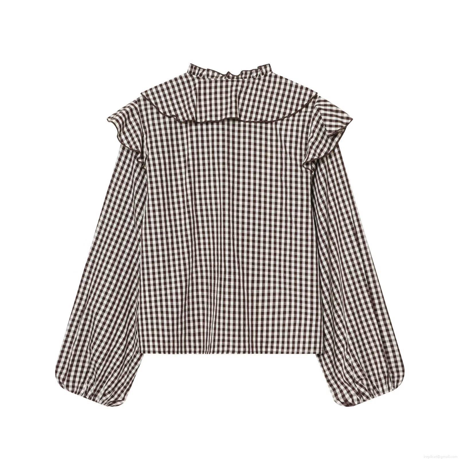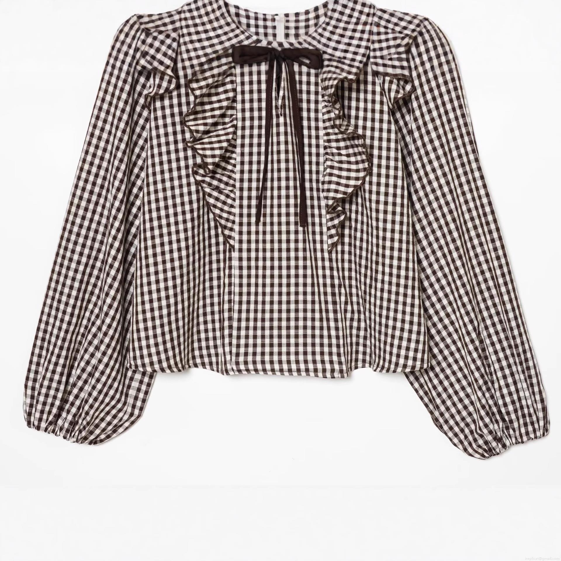 • Women's Ruffle Layered Gingham Plaid Blouse Long Sleeve Tie Neck Button Down Polyester Cotton Blend Casual Fashion Office Shirt
