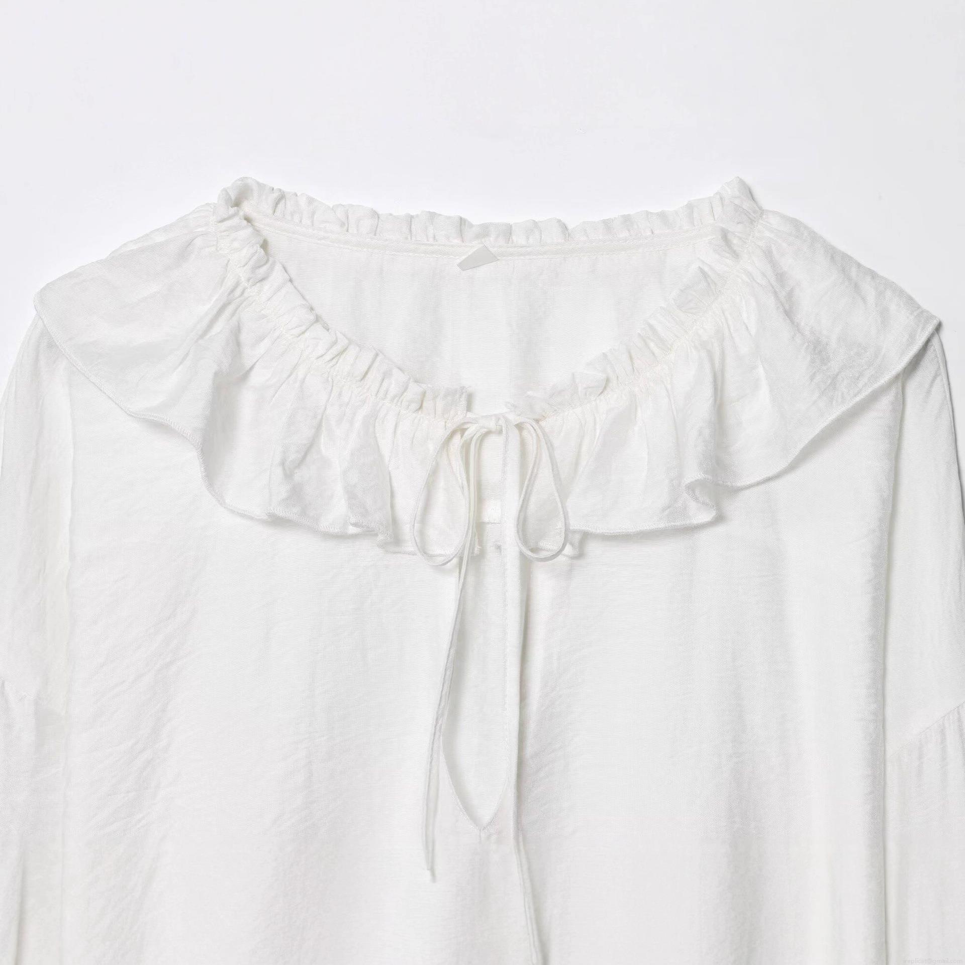 • Women's Ruffle Peter Pan Collar Blouse Long Sleeve Tie Neck Solid Color Polyester Shirt Casual Sweet Elegant Tops for Women Spring Autumn