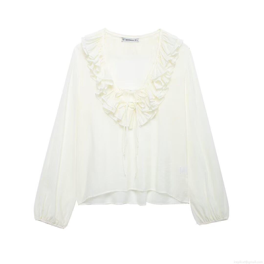 • Women's Ruffle V-Neck Blouse Long Sleeve Tie Front Polyester Shirt Fashion Loose Fall Tops For Women Commuter Office Daily Wear