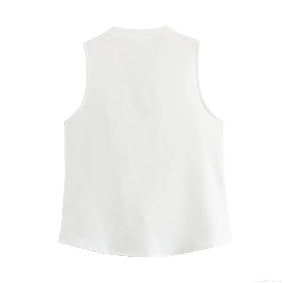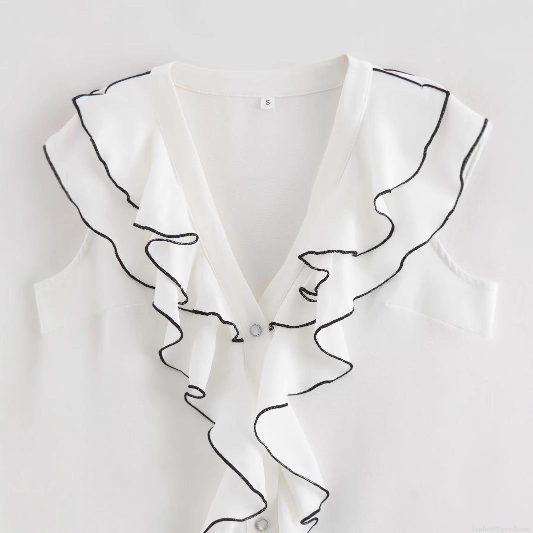 • Women's Ruffled Sleeveless Blouse 100% Polyester Comfortable Casual Solid Top With Contrast Piping For Office Daily Streetwear Ladies