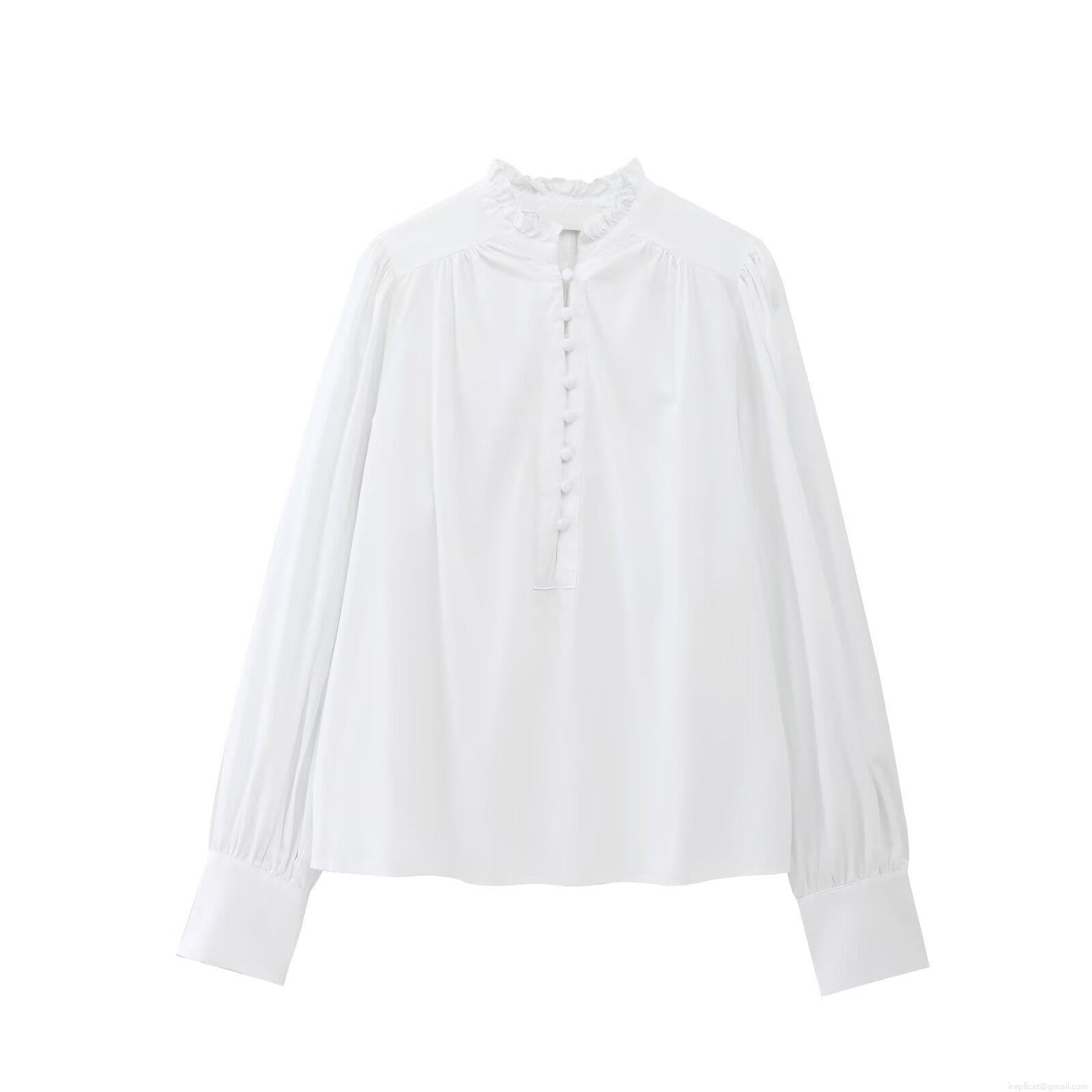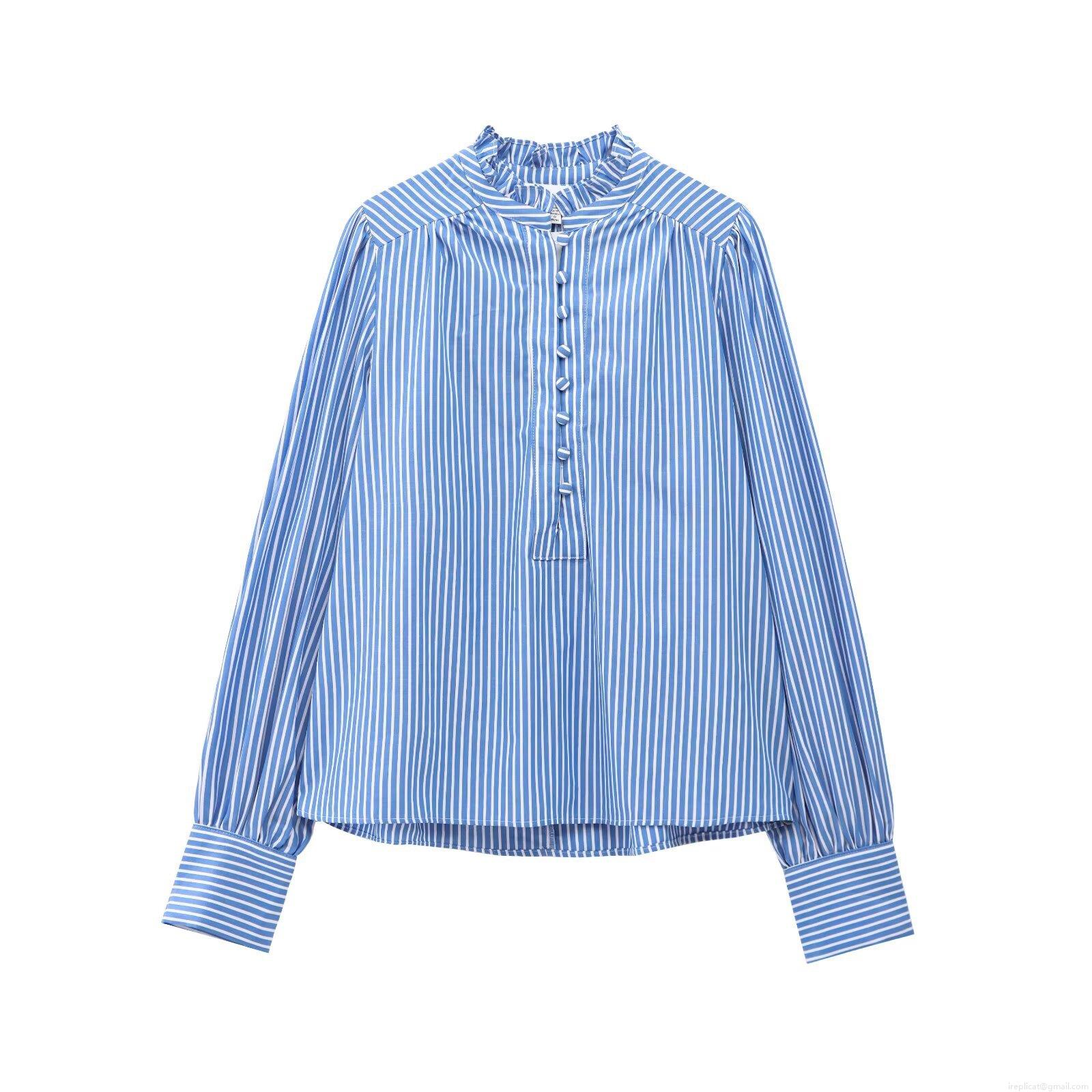 Solid Color, Stripe, Pleats, Ruffles, Collage, Buttons, Stand-up Collar