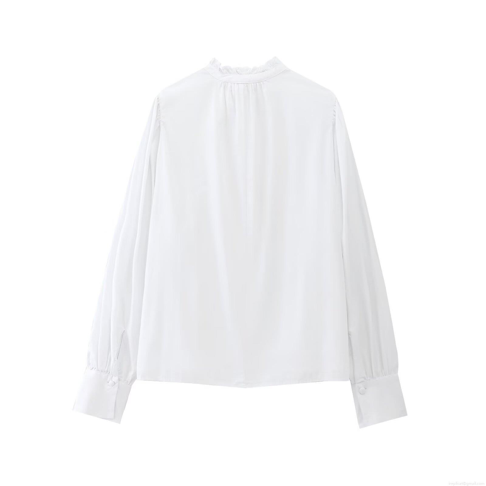 Women's Ruffled Stand Collar Long Sleeve Shirt Polyester Pleated Button Down Striped Plain Blouse Casual Office Streetwear Tops