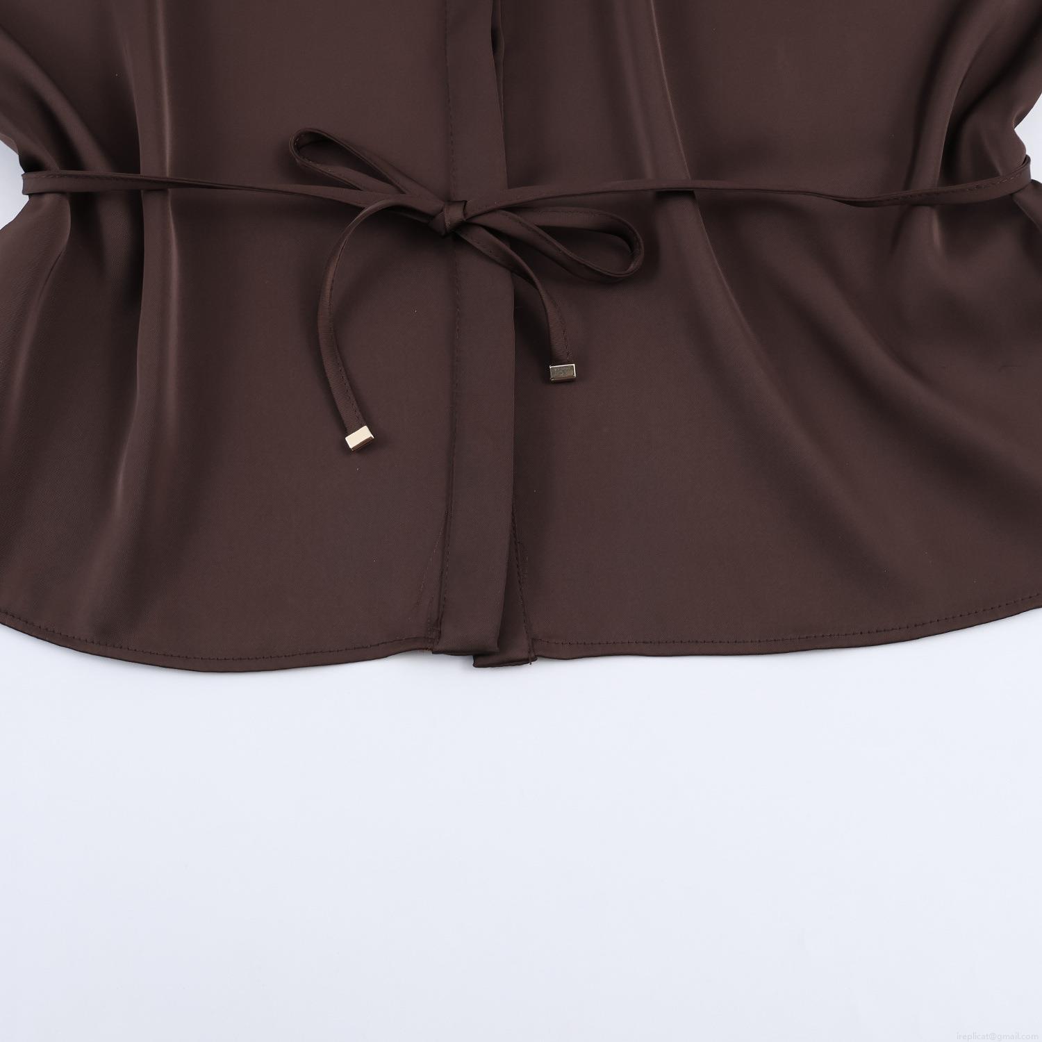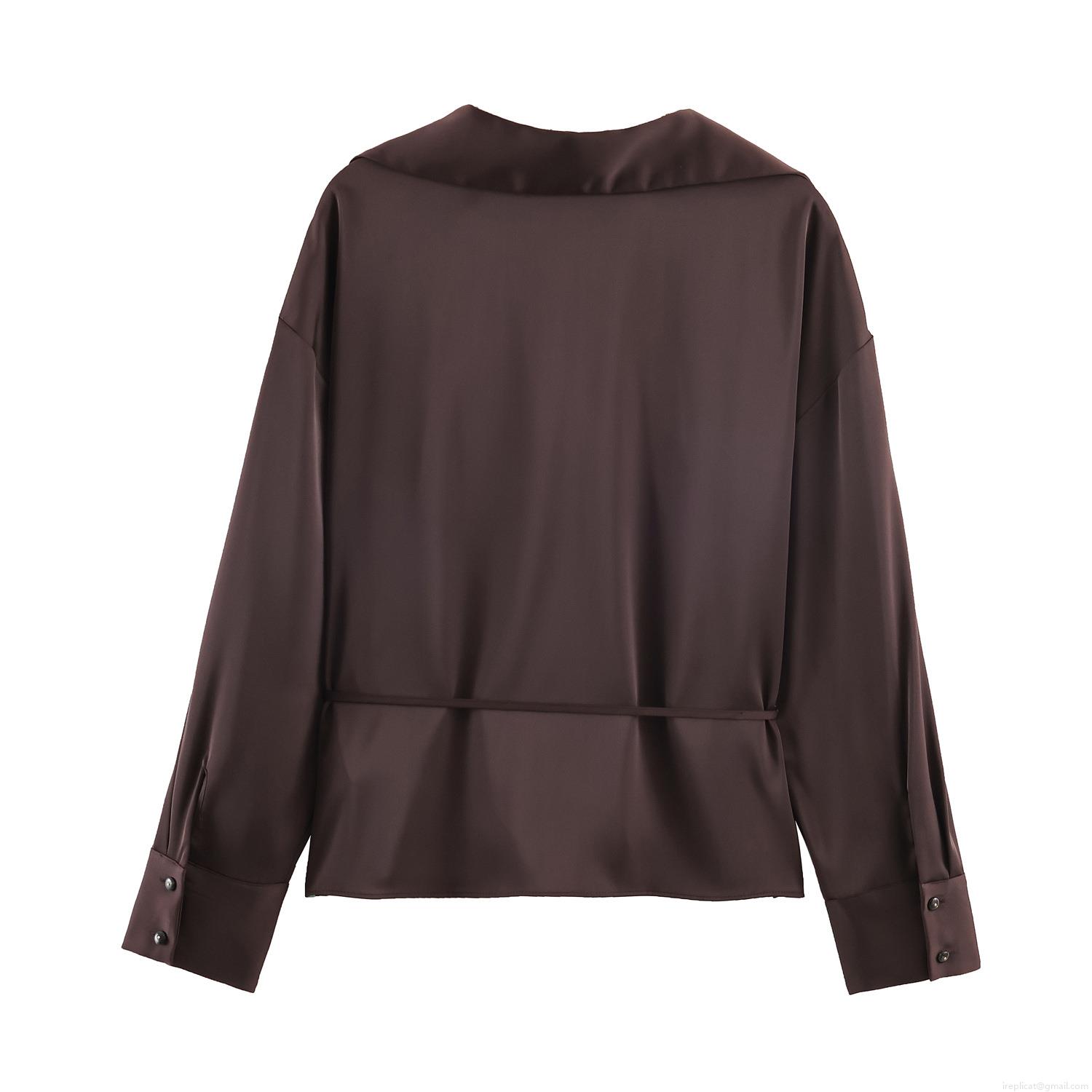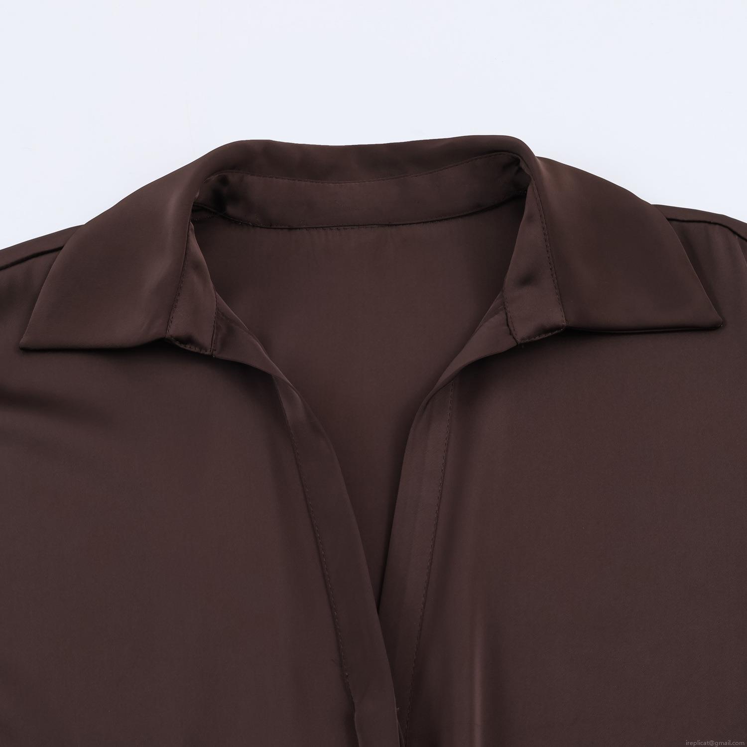• Women's Satin Blouse V-Neck Puff Sleeve Drawstring Waist Solid Color Elegant Silk Texture Top For Office Daily Casual Wear Sophisticated Shirt