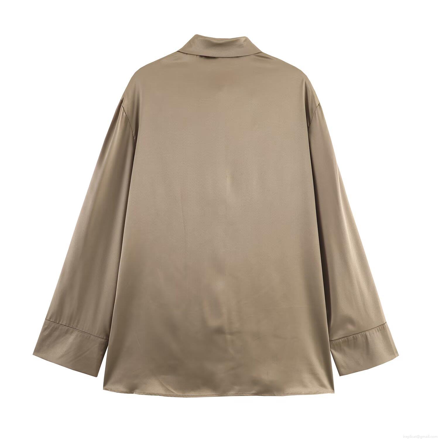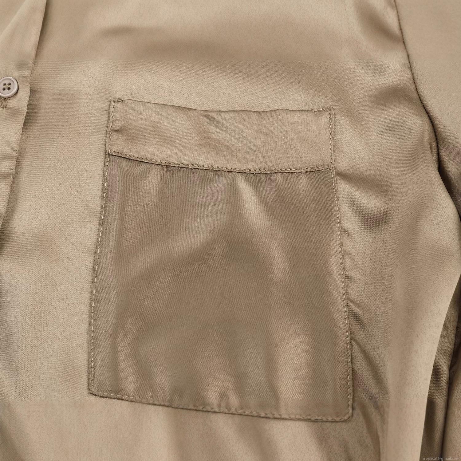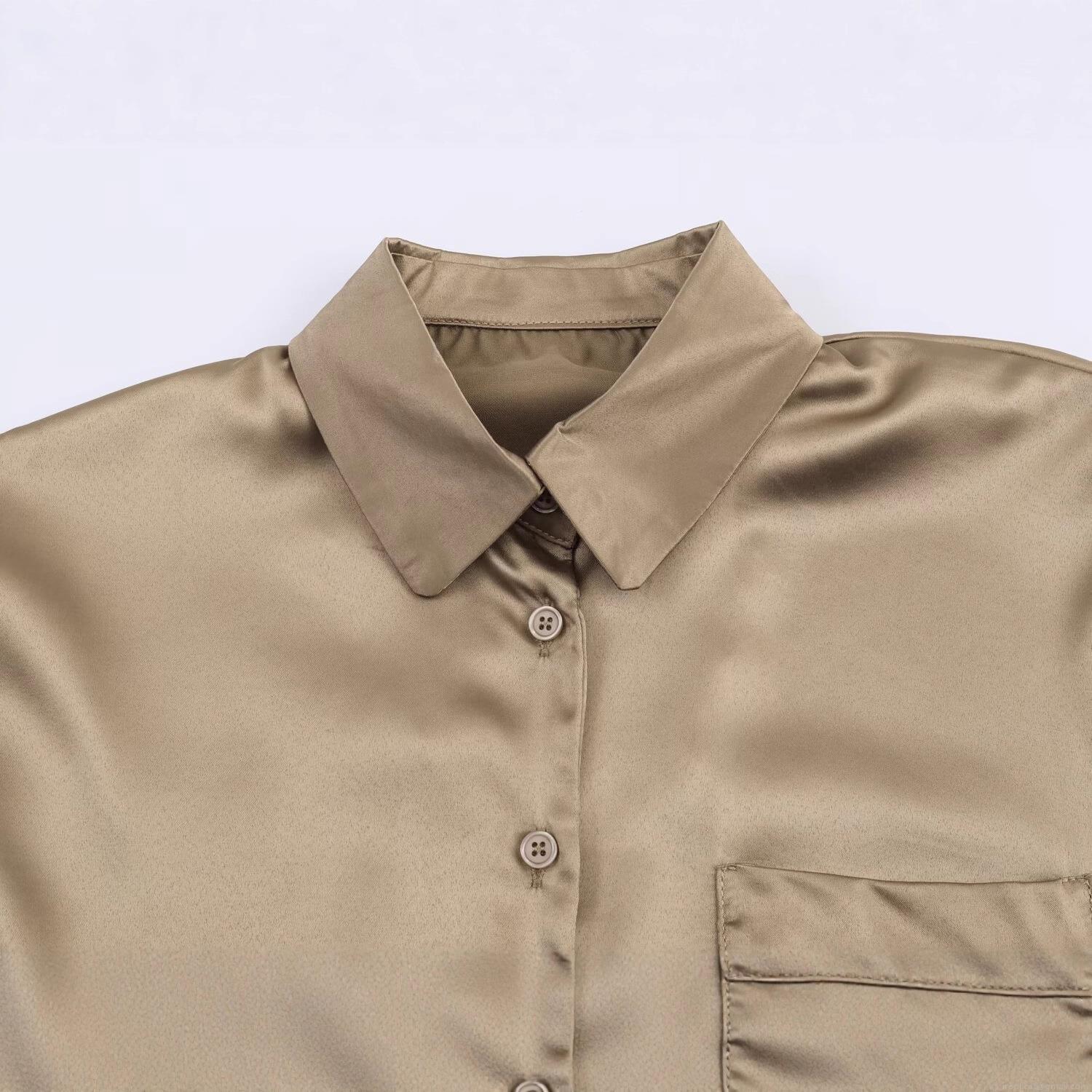 • Women's Satin Long Sleeve Shirt Elegant Silk-like Lapel Blouse With Pocket Solid Color Button Down Office Commute Street Style Champagne Gold Tops