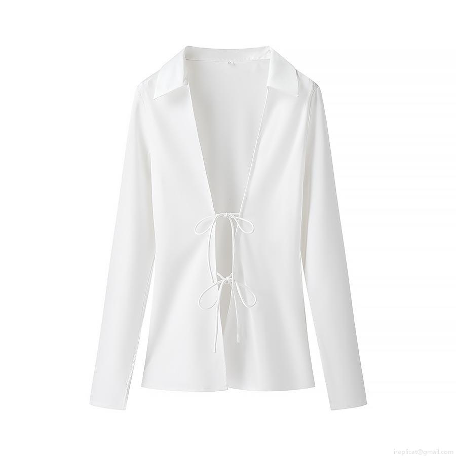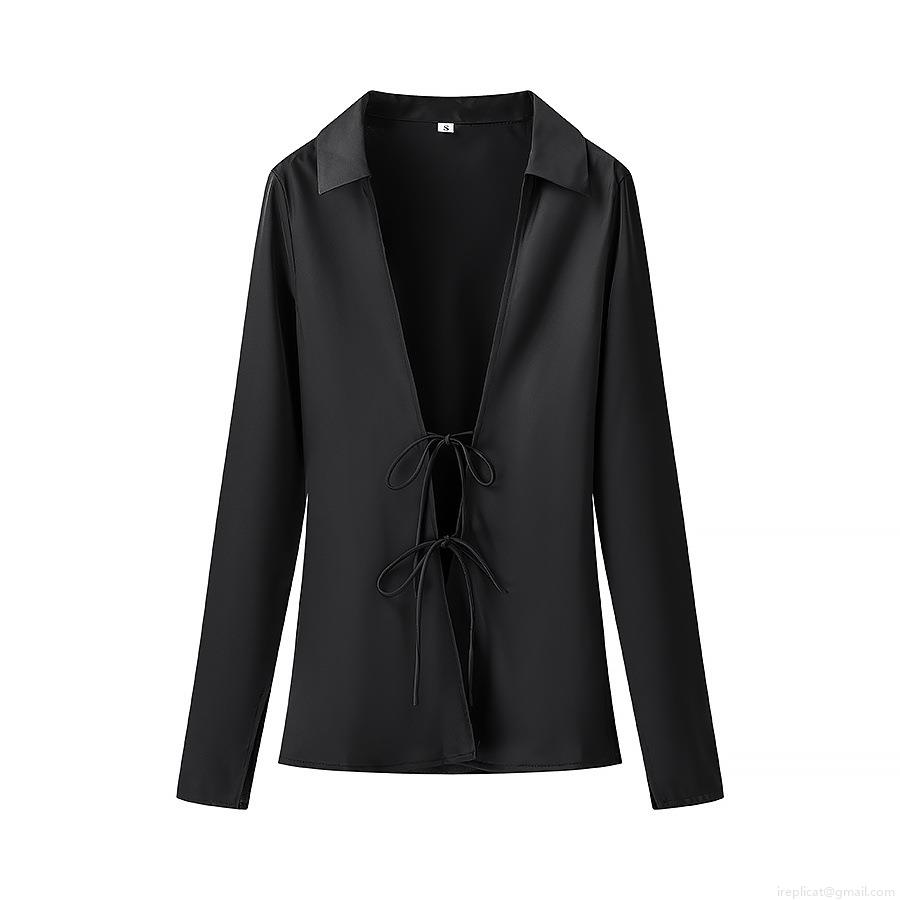 • Women's Satin Long Sleeve Tie Front Blouse V Neck Solid Color Elegant Minimalist Streetwear Shirt Top For Ladies Spring Autumn Fashion