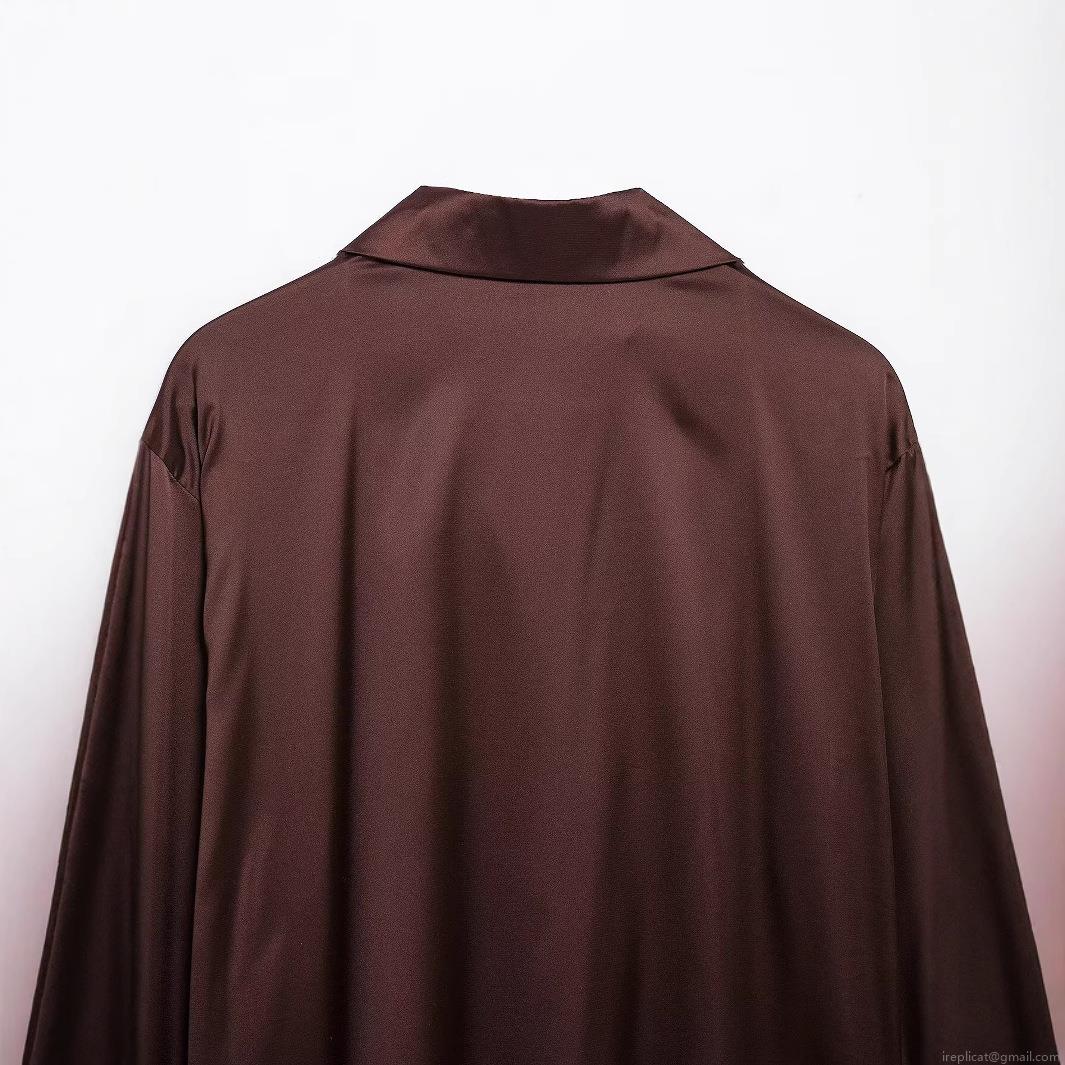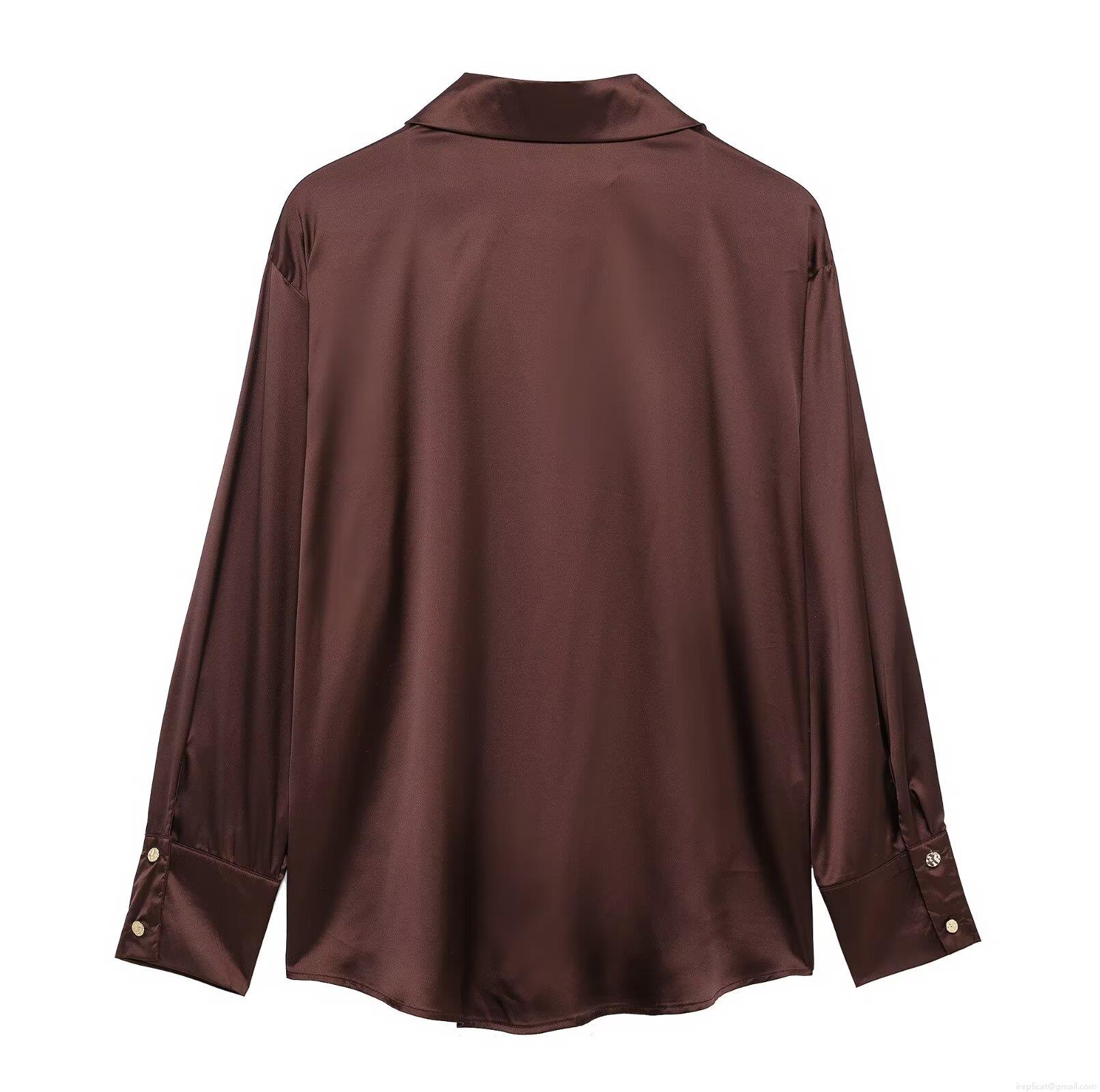 • Women's Satin Silk Button Down Shirt Long Sleeve Lapel Loose Blouse Casual Streetwear Tops With Gold Buttons Coffee Brown Elegant Spring Office Wear