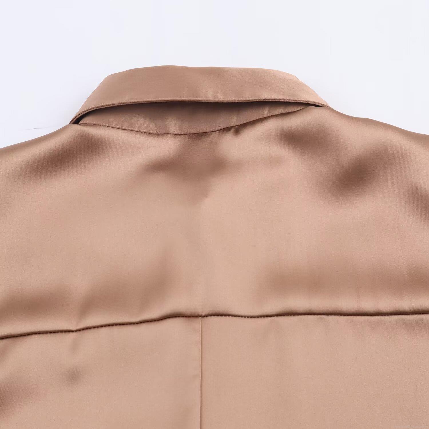 • Women's Satin Silk Textured Button Down Shirt Elegant Long Sleeve Lapel Blouse Office Work Casual Drop Shoulder Glossy Satin Blouse Tops For Women