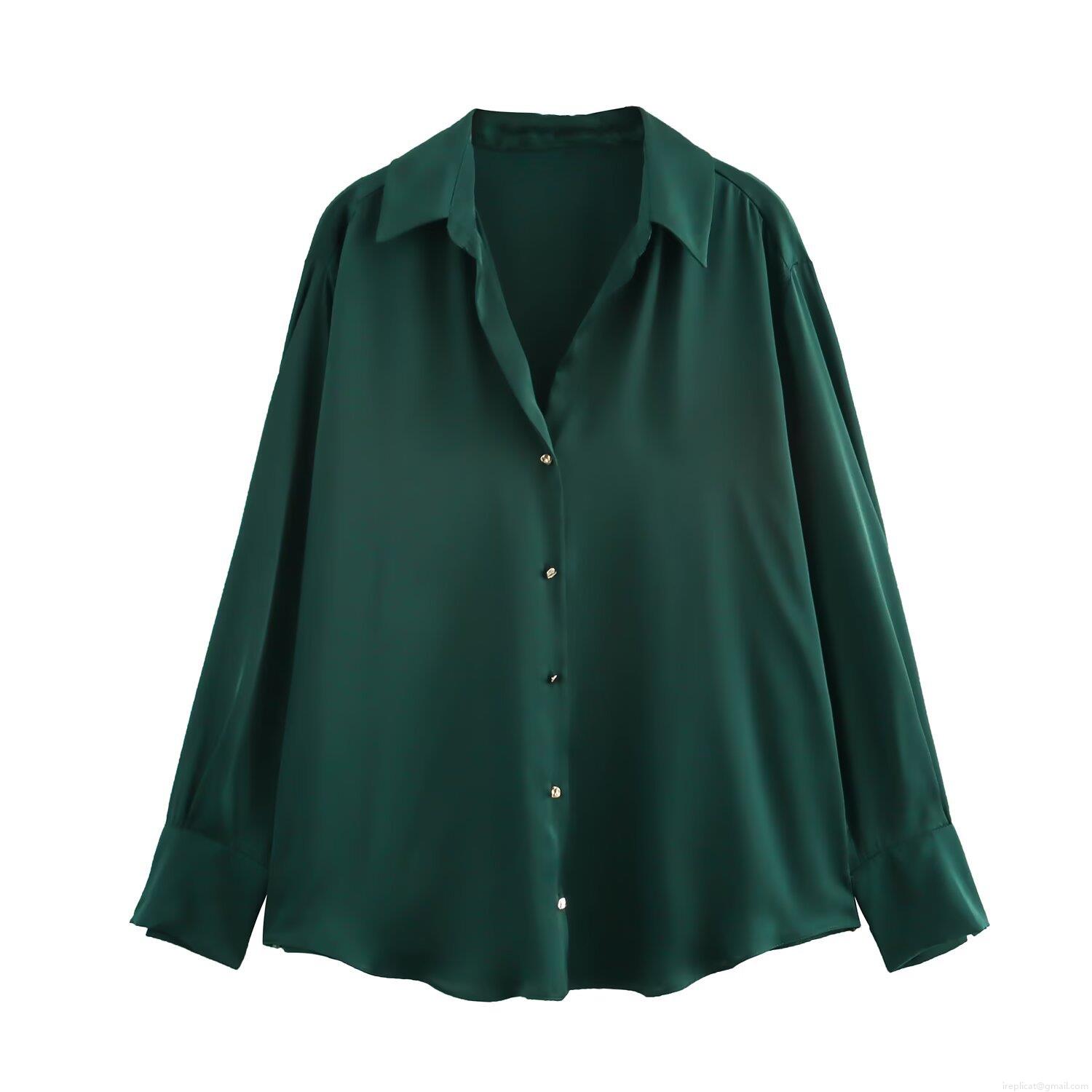 • Women's Satin Silk-like Long Sleeve Shirt Elegant Lapel Button Down Blouse Loose Casual Streetwear Office Daily Fashion Tops For Lady