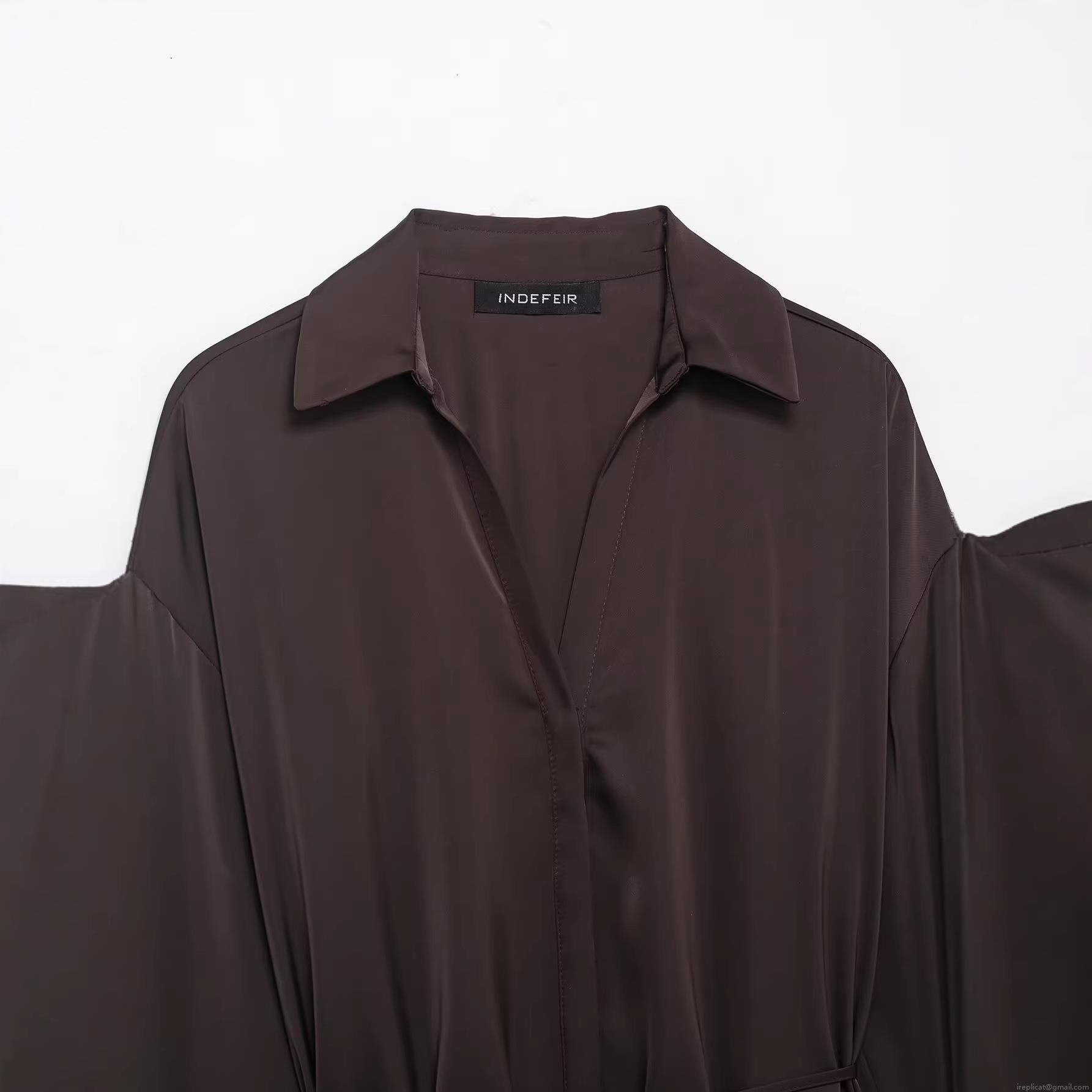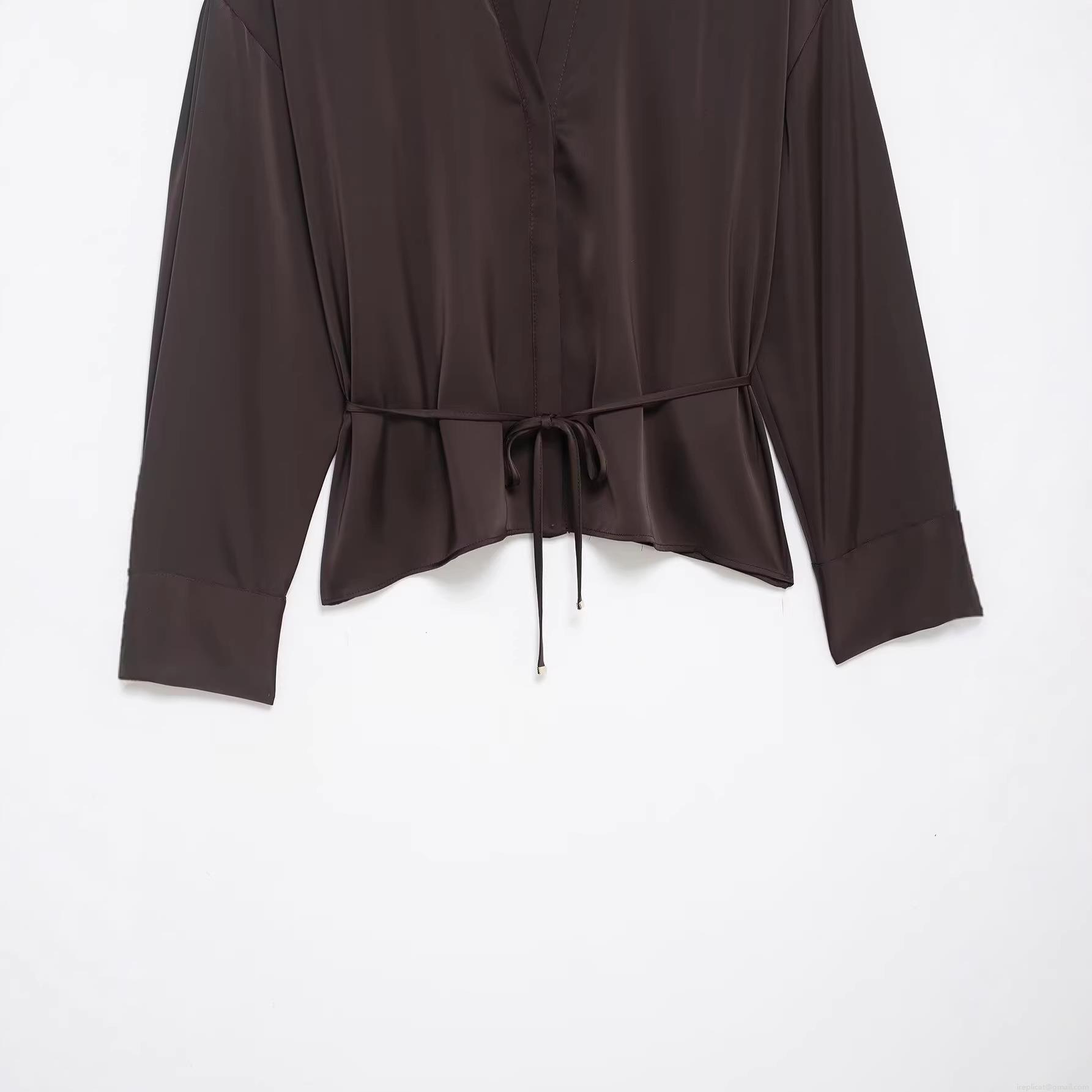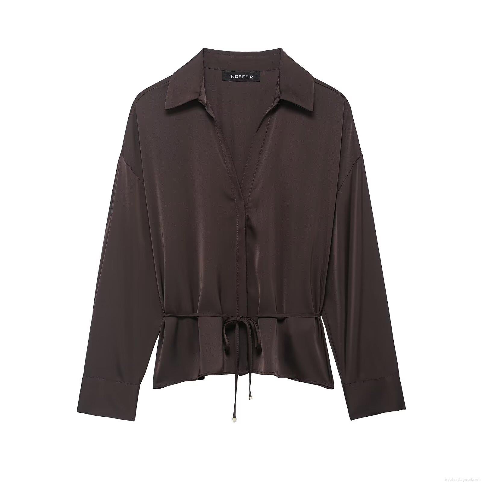 • Women's Satin Silk-like Long Sleeve Shirt V-Neck Tie Waist Drawstring Blouse Solid Color Elegant Streetwear Spring Tops
