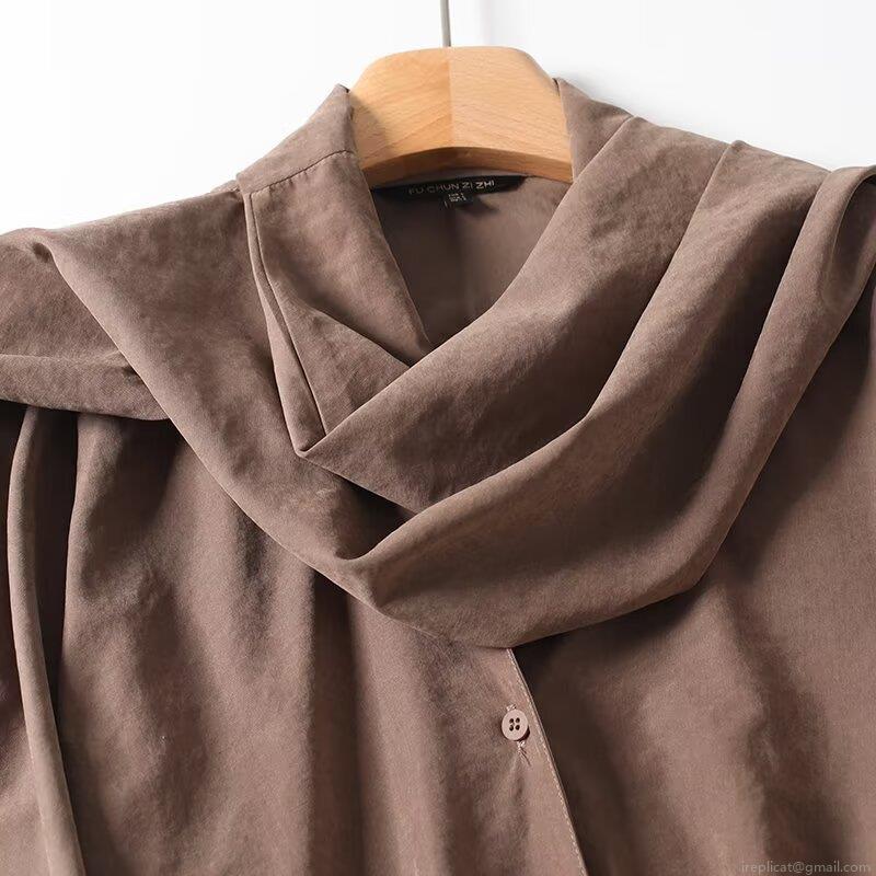 • Women's Scarf Collar Long Sleeve Blouse Elegant Polyester Nylon Blend Loose Fit Solid Color Camel Shirt For Office Daily Wear Fashion Fall Autumn Top