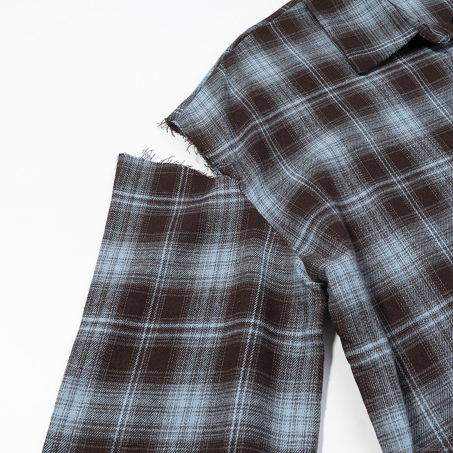 • Women's Sexy Cold Shoulder Plaid Blouse Long Sleeve Button Up Shirt Casual Loose Fit Streetwear Polyester Top Brown Blue Check