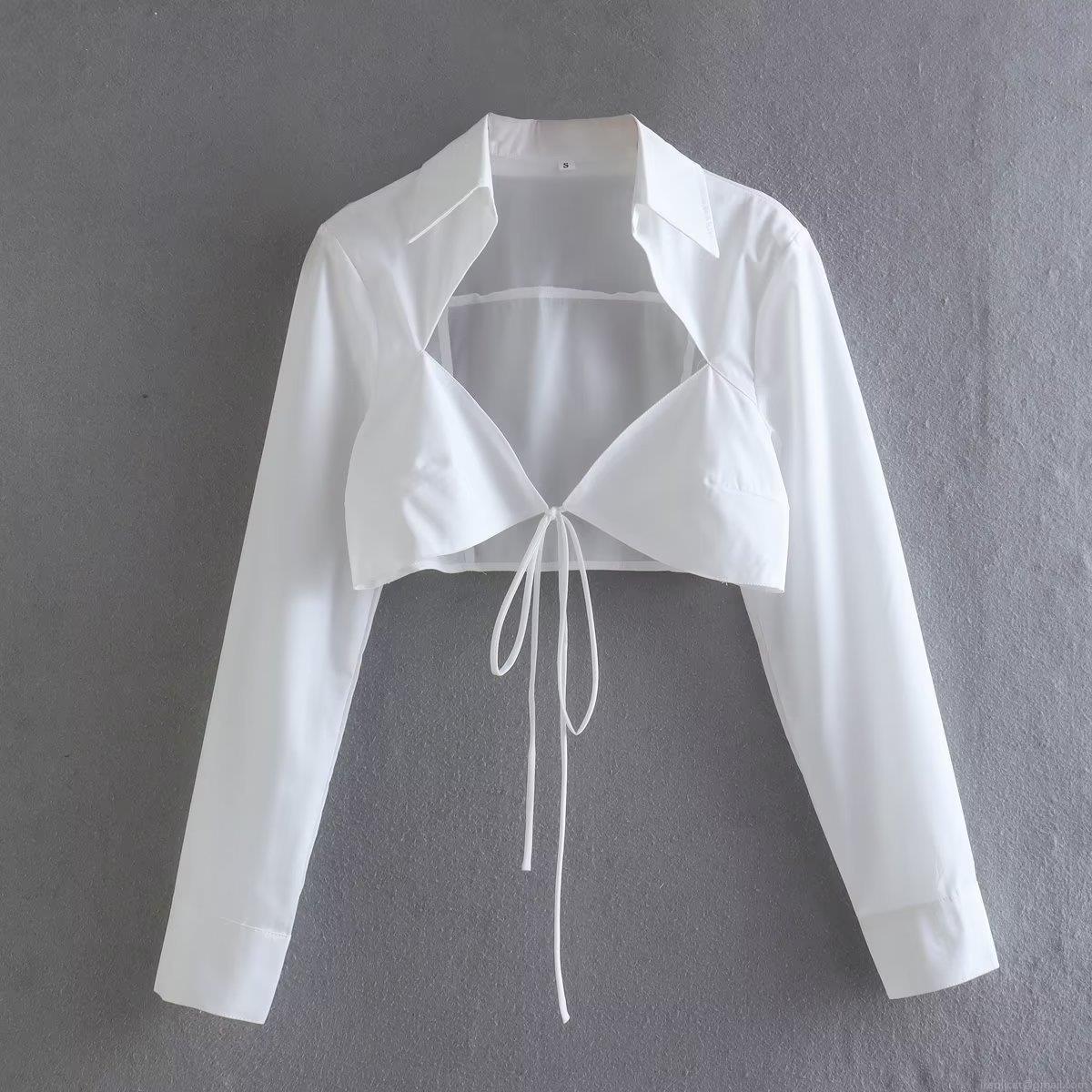 • Women's Sexy Cropped Long Sleeve Shirt Solid Color Lace-up Cut-out Blouse Polyester Woven Top For Party Club Street Trendy Western Style