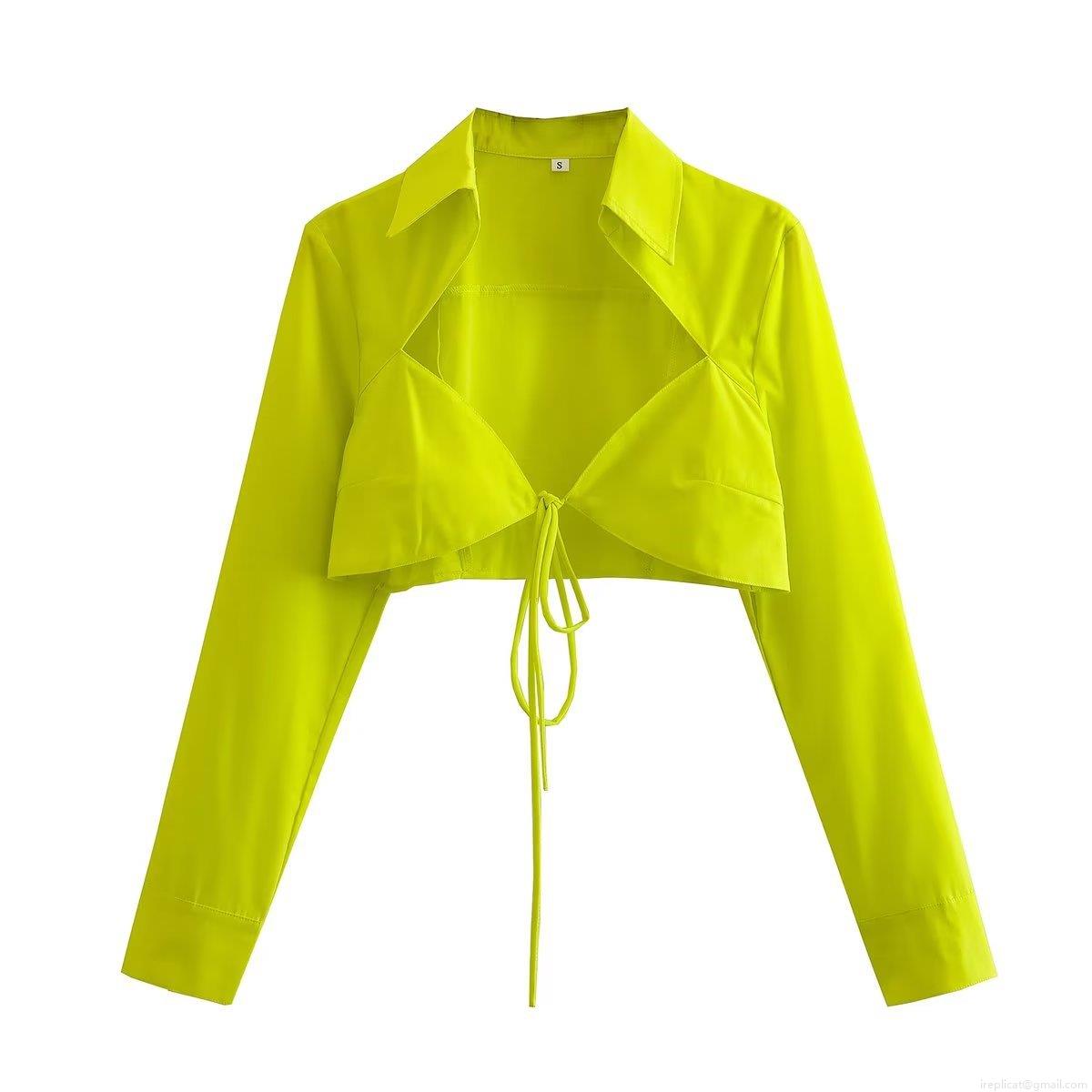 Women's Sexy Cropped Long Sleeve Shirt Solid Color Lace-up Cut-out Blouse Polyester Woven Top For Party Club Street Trendy Western Style
