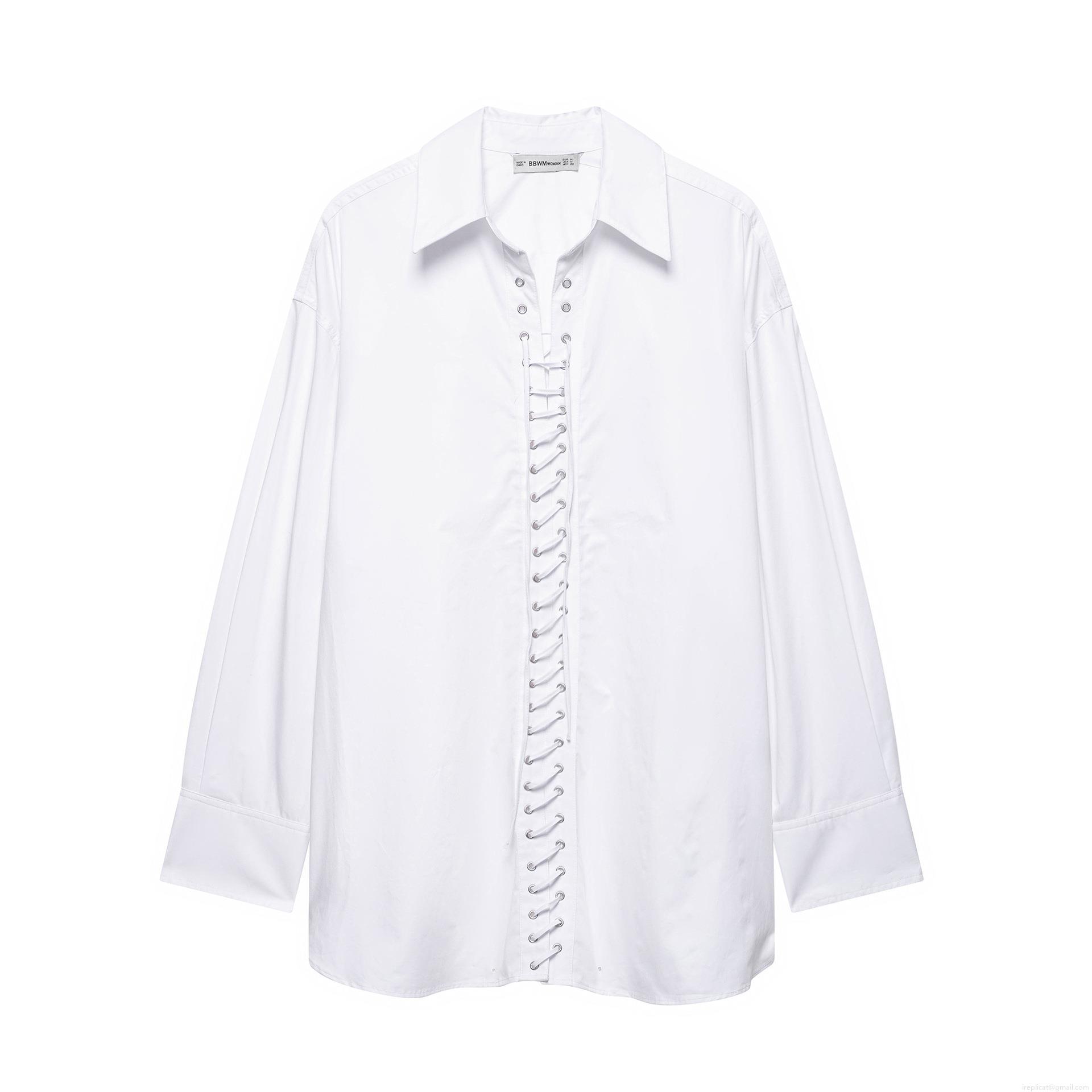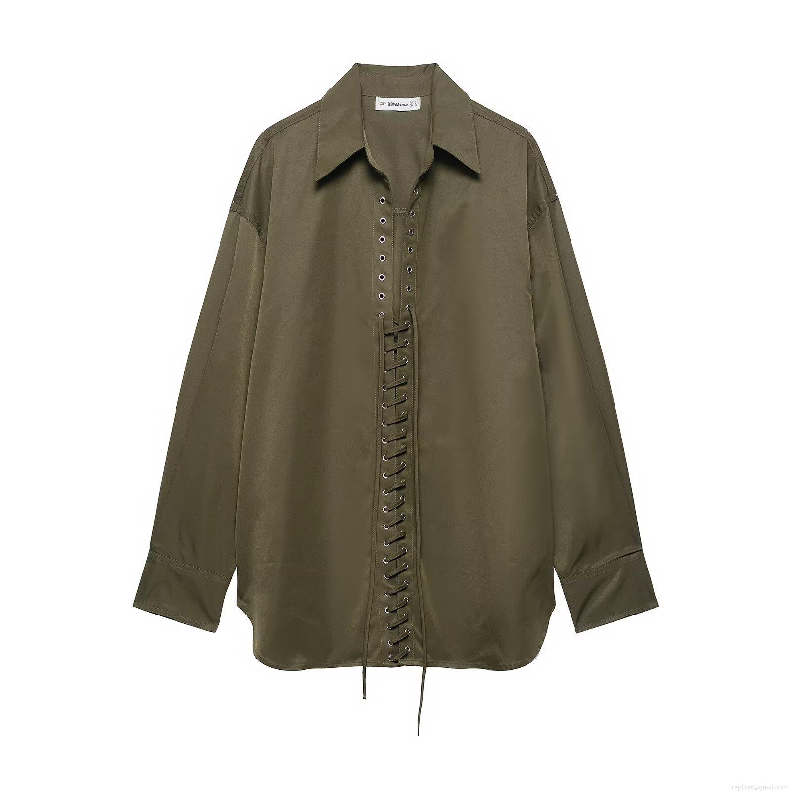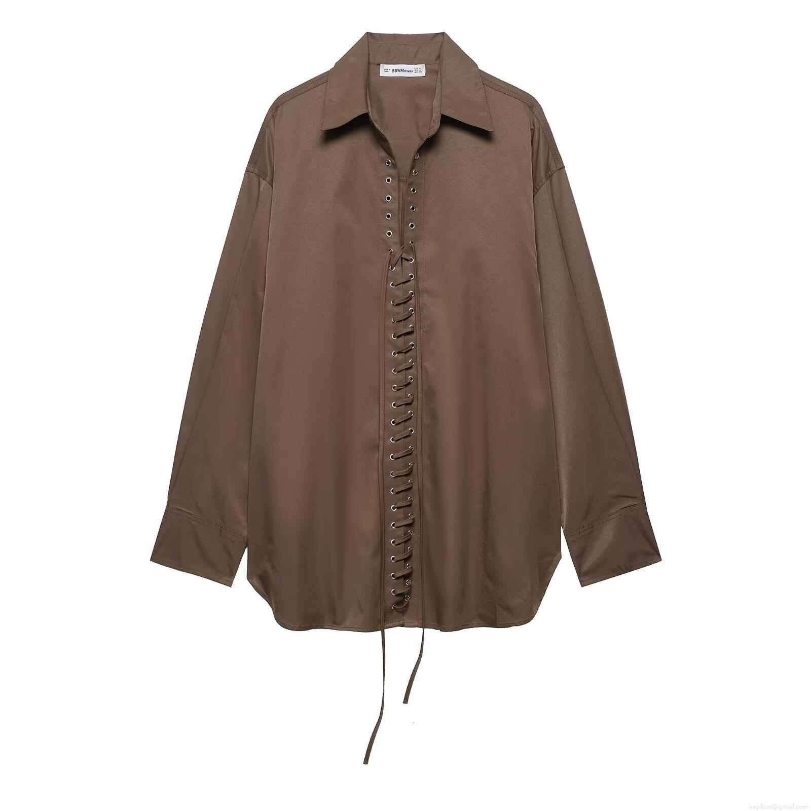 Women's Sexy V Neck Lace Up Blouse 100% Polyester Long Sleeve Solid Color Shirt With Metal Eyelets Casual Office Chic Tops