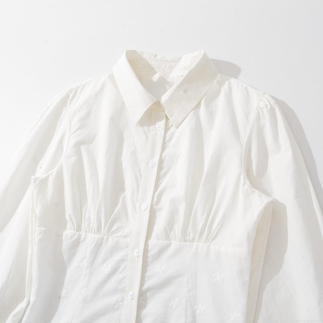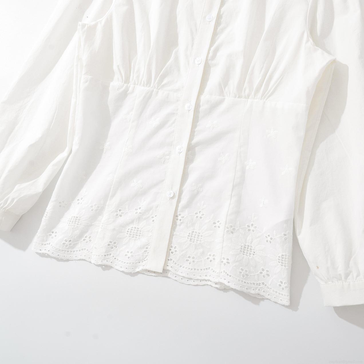 • Women's Sexy White Cotton Blend Embroidered Shirt Hollow-out Slim Fit Lapel Long Sleeve Blouse For Elegant Party Casual Daily Wear