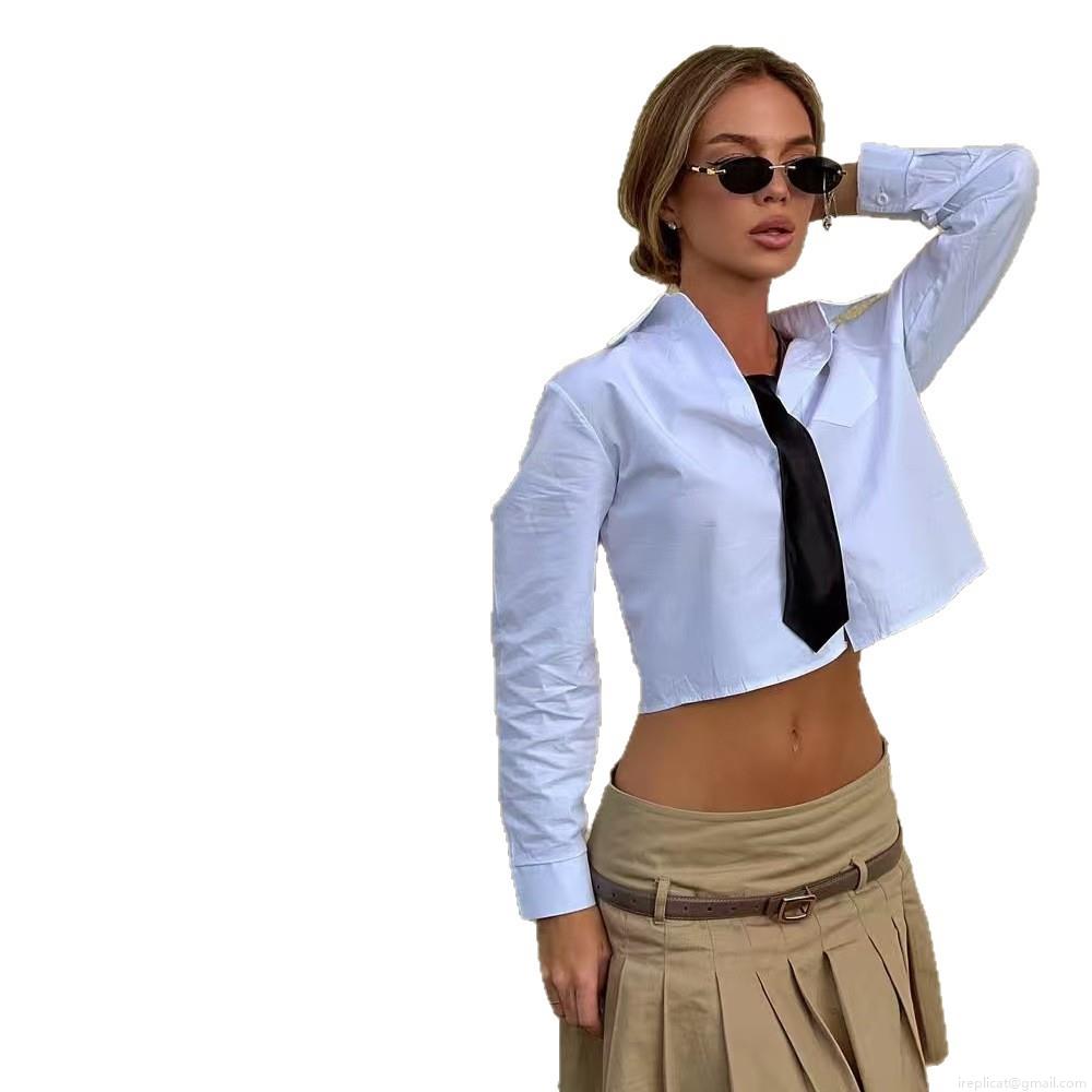 Women's Short Crop Shirt With Tie Long Sleeve Lapel Collar Blouse Streetwear Sexy Solid Color Polyester Blend Top For Women Daily Fashion