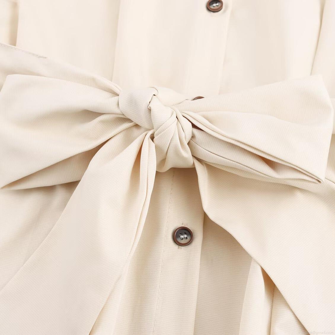 Solid Color, Bow, Belt, Workwear Style, Shoulder Epaulettes, Single-breasted