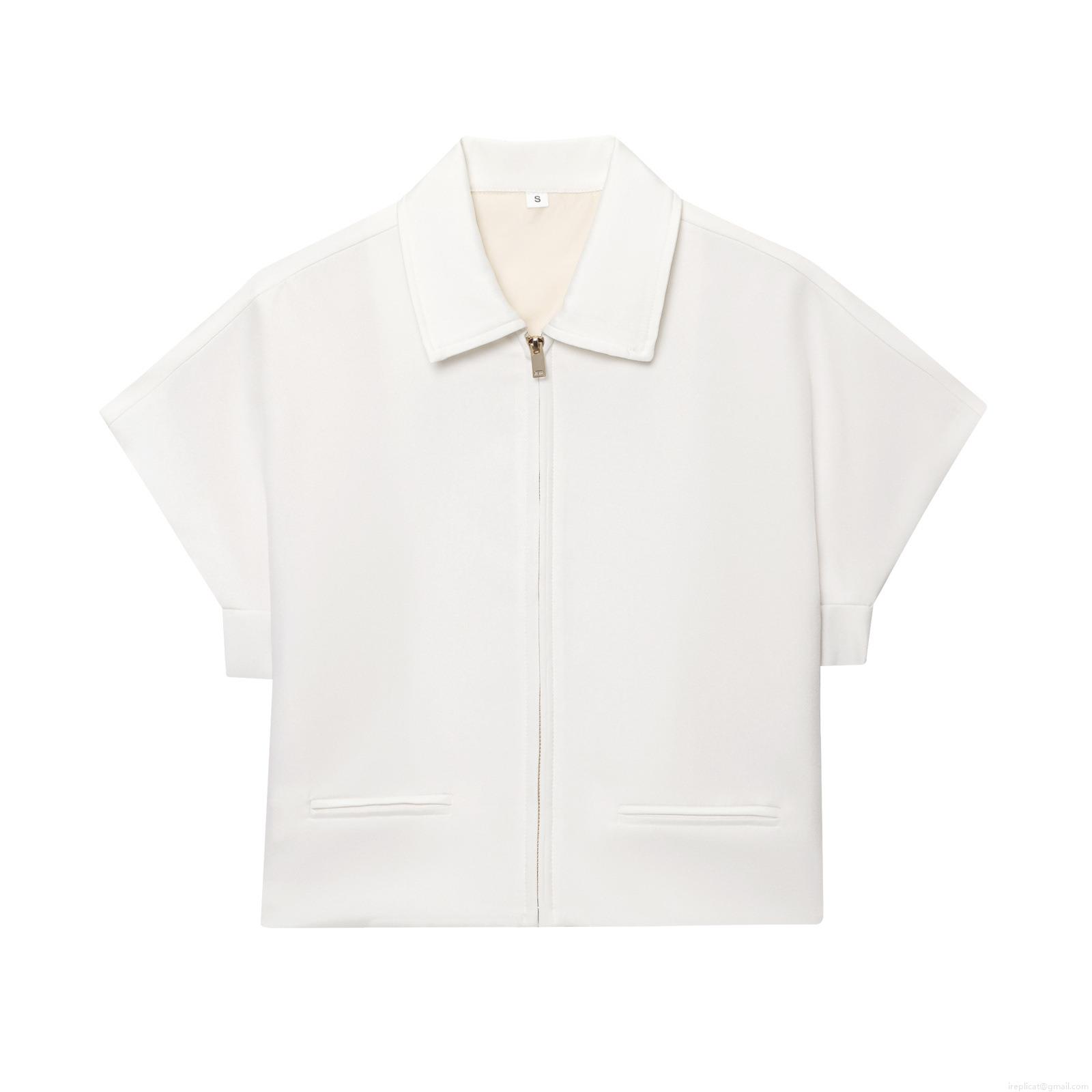 • Women's Short Sleeve Turn-down Collar Zipper Shirt Jacket Casual Solid Color Polyester Summer Streetwear Chic Tops For Women