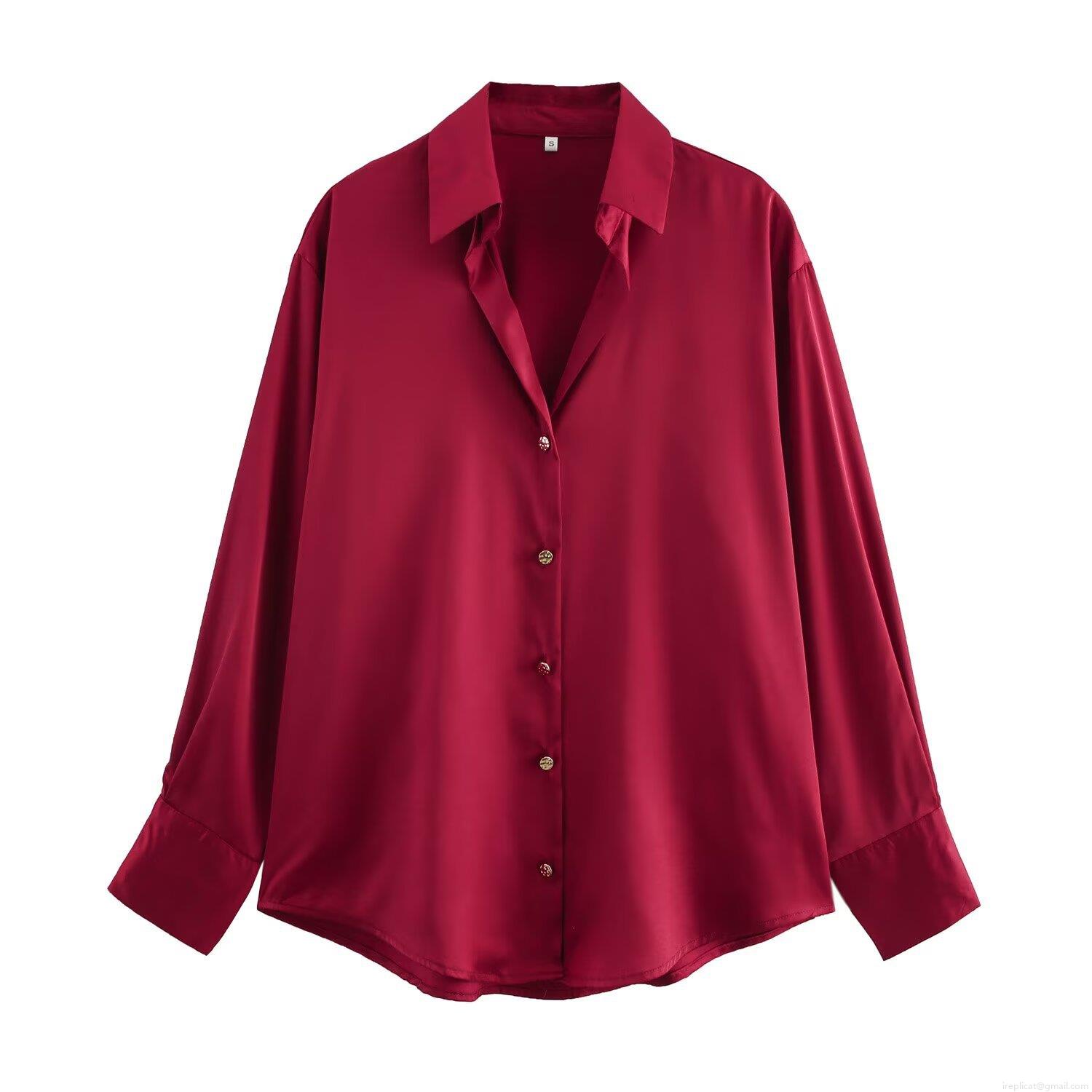 • Women's Silky Polyester Satin Long Sleeve Shirt Button Down Lapel Collar Blouse For Office Casual Streetwear Solid Color Striped Tops