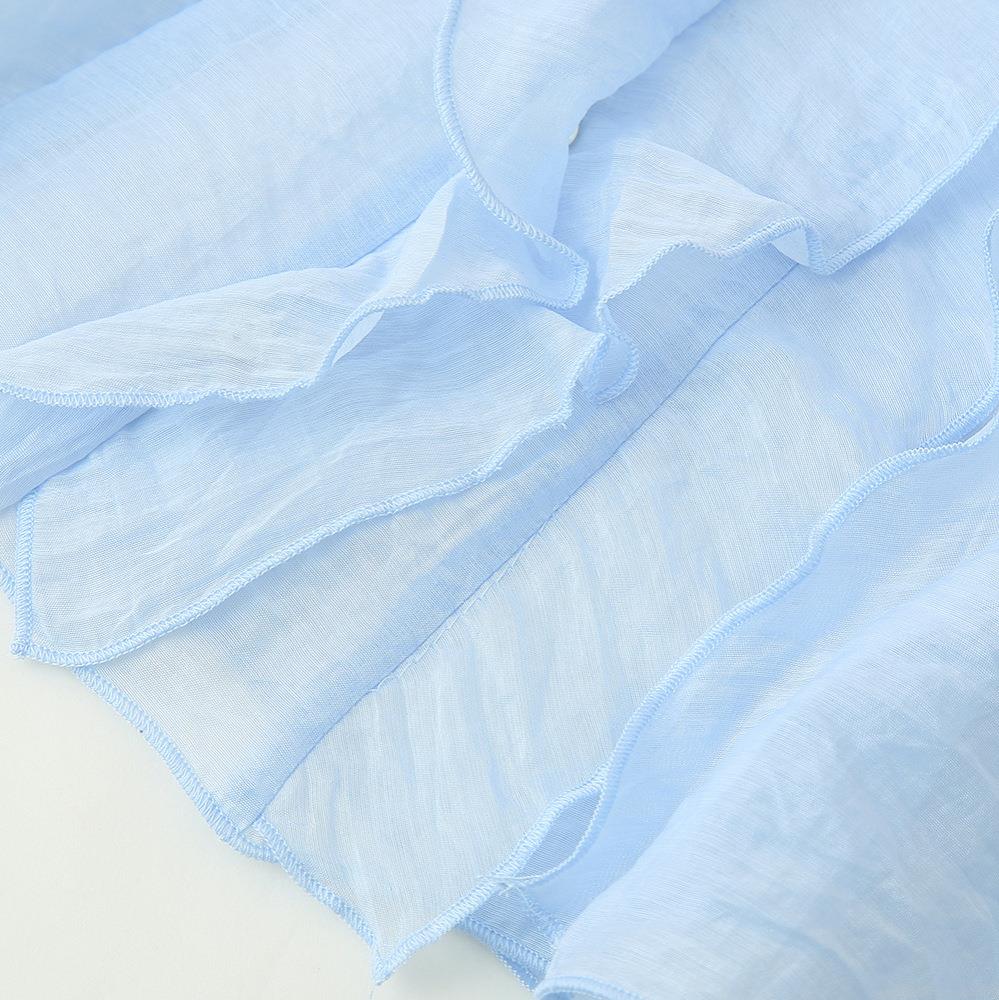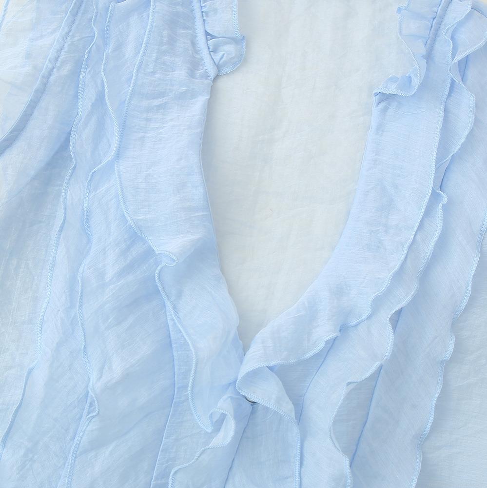 • Women's Sky Blue Chiffon Sleeveless Blouse With Ruffle Detail V-Neck Loose Summer Tank Top Sweet Solid Color Casual Shirts For Ladies