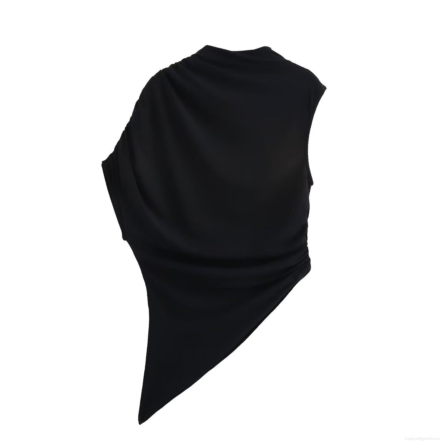 • Women's Sleeveless Asymmetrical Hem Top Mock Neck Side Ruched Solid Color Polyester Summer Slim Fit Streetwear Casual Pullover Blouse