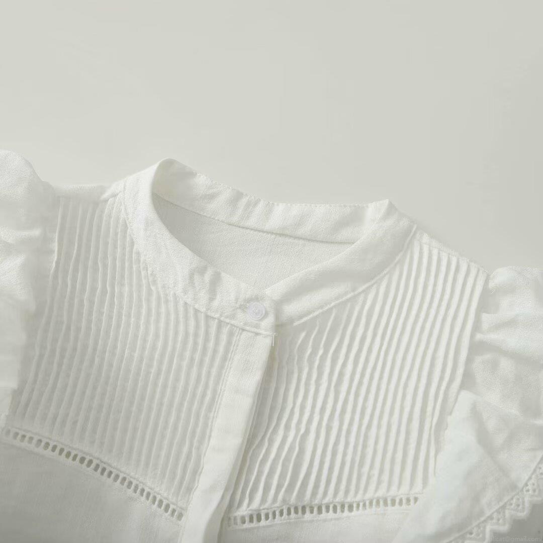 Solid Color, Wood Ear Edge, Buttons, Openwork Embroidery, Pleated Decoration, Flying Sleeves