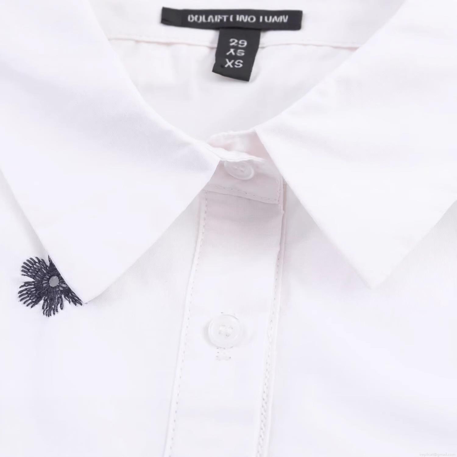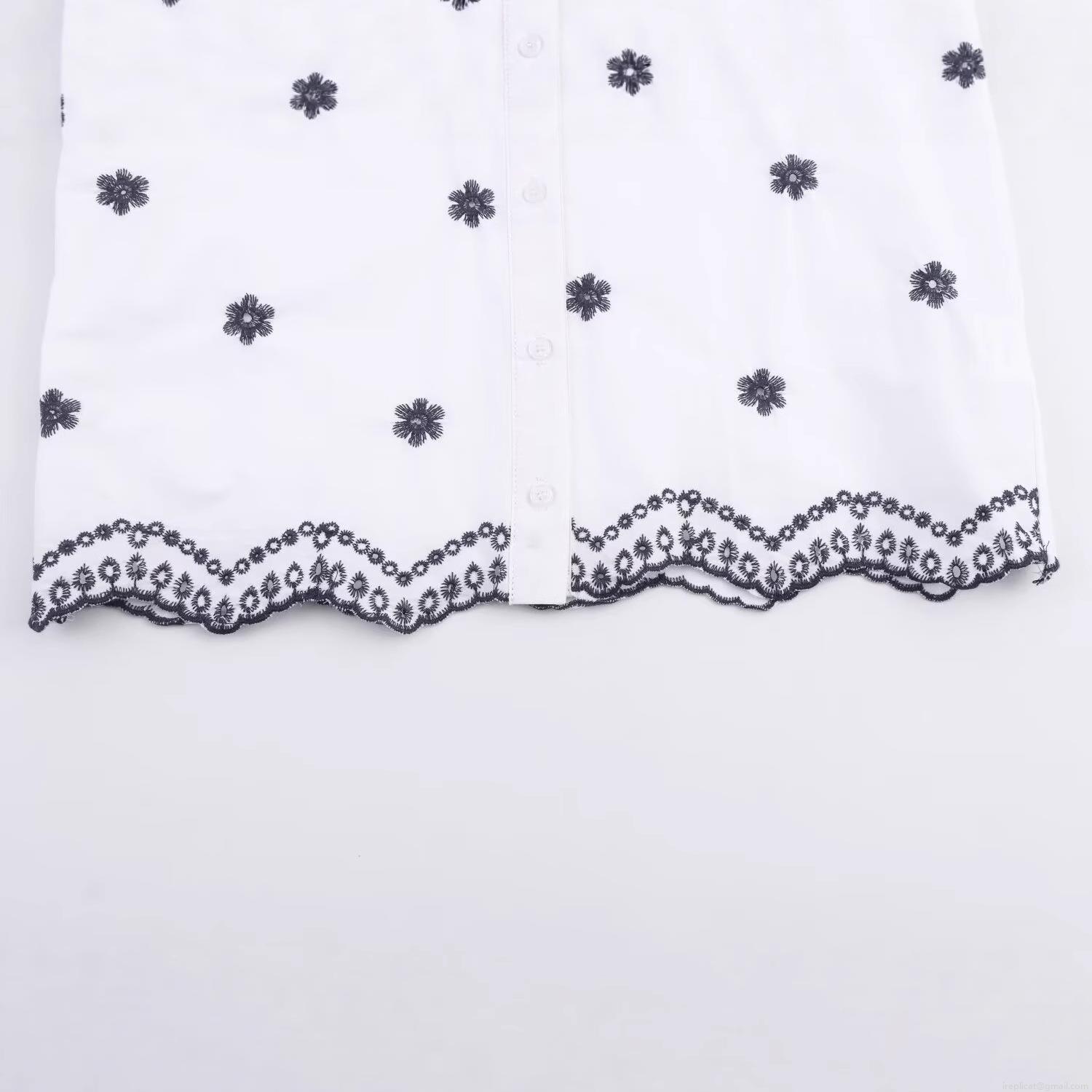 • Women's Sleeveless Embroidered Shirt Cotton Blend Floral Pattern Scalloped Hem Turn-down Collar Button Down Blouse Top for Summer Casual Daily Wear