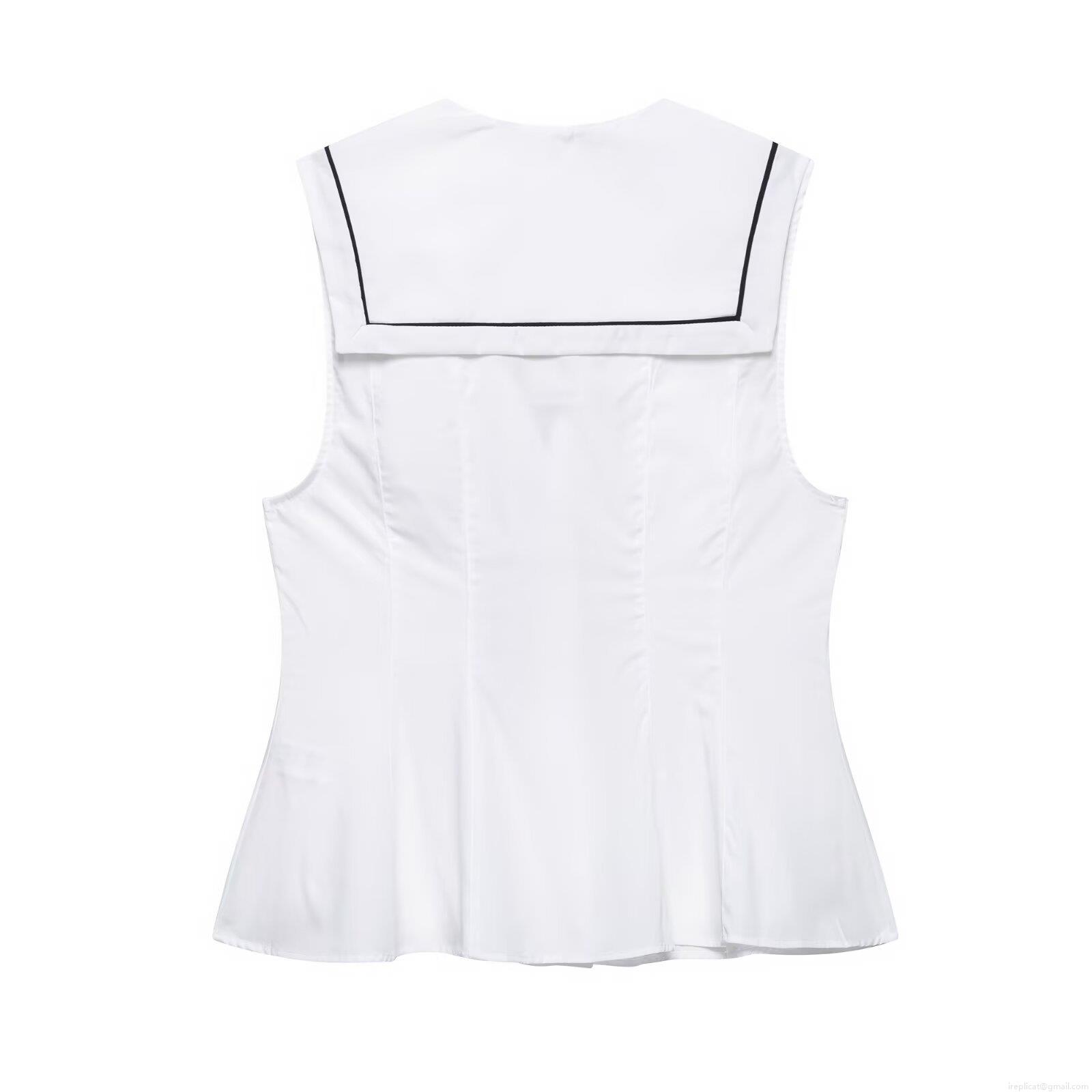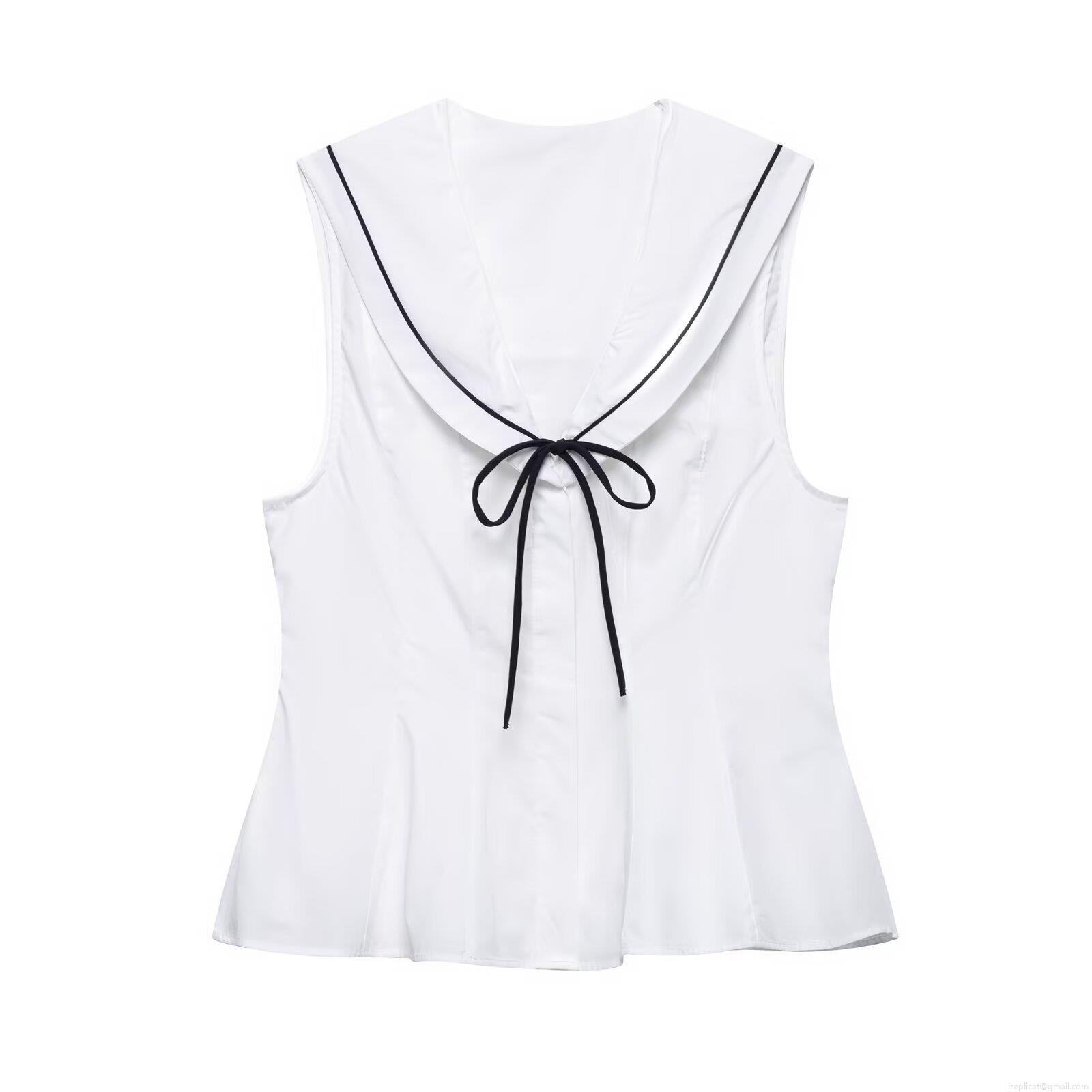 • Women's Sleeveless Peplum Top Bow Tie Sailor Collar Woven Polyester Summer Blouse Preppy Style Navy Shirt For Women