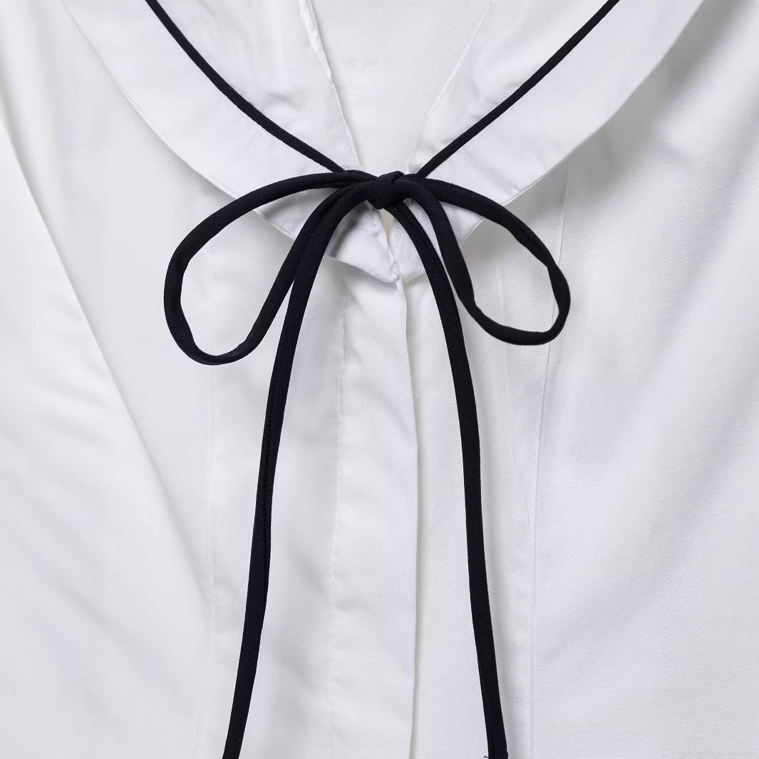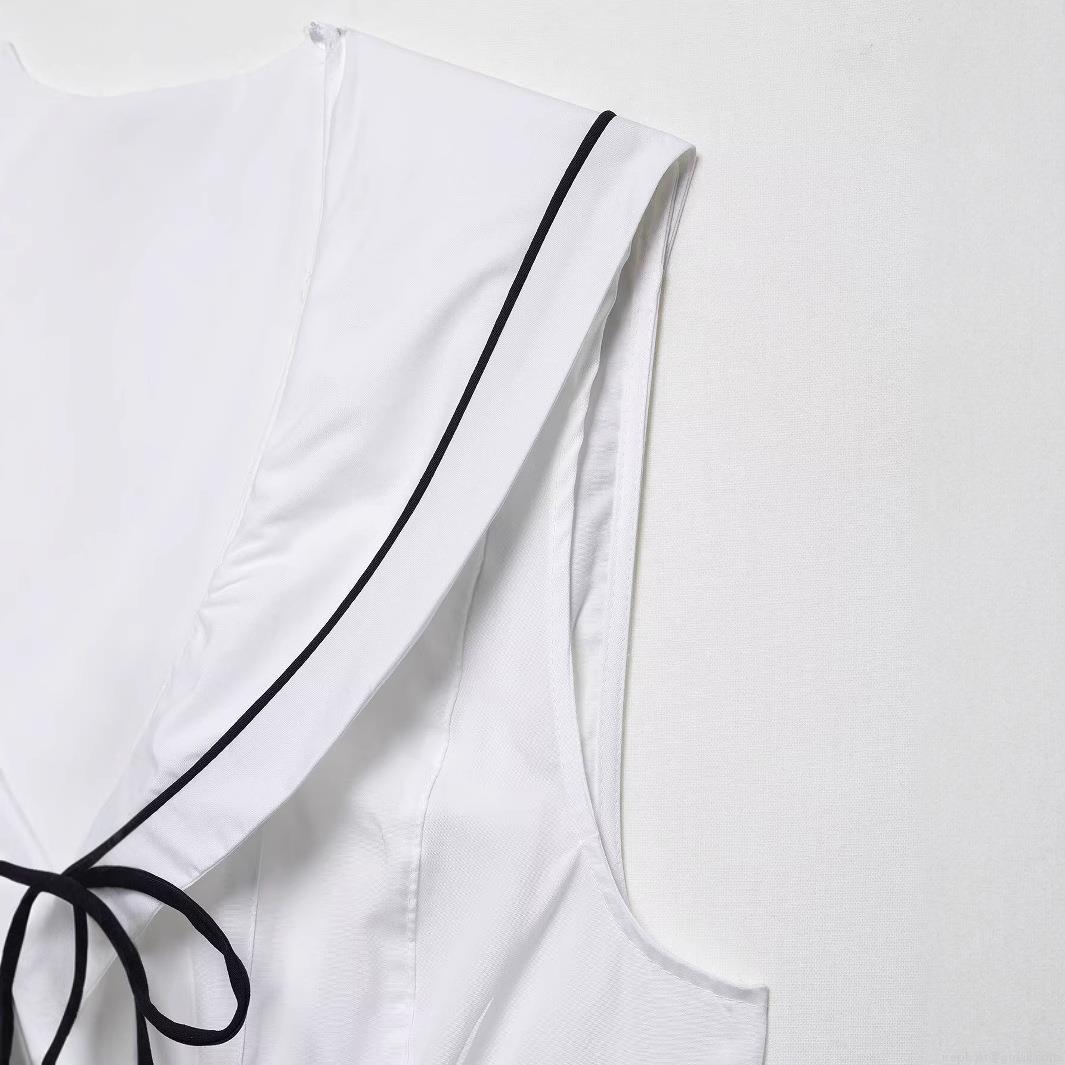 Solid Color, Splice, Bow, Navy Style, Sailor Collar, Contrasting Edges, Umbrella-shaped Hem