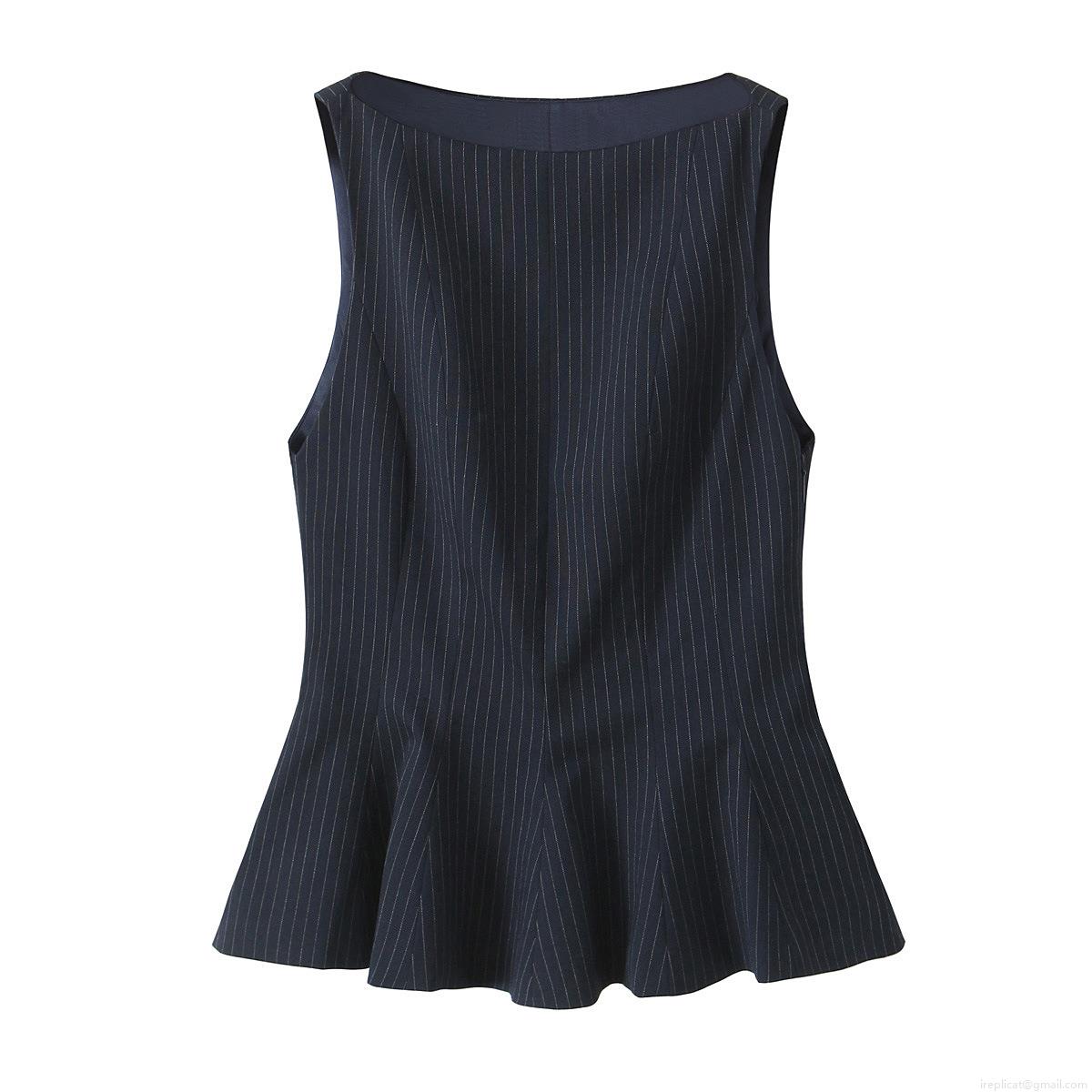 • Women's Sleeveless Peplum Top Round Neck Slim Fit Summer Blouse Elegant Office Casual Solid Striped Sleeveless Shirt Polyester Woven Top For Women