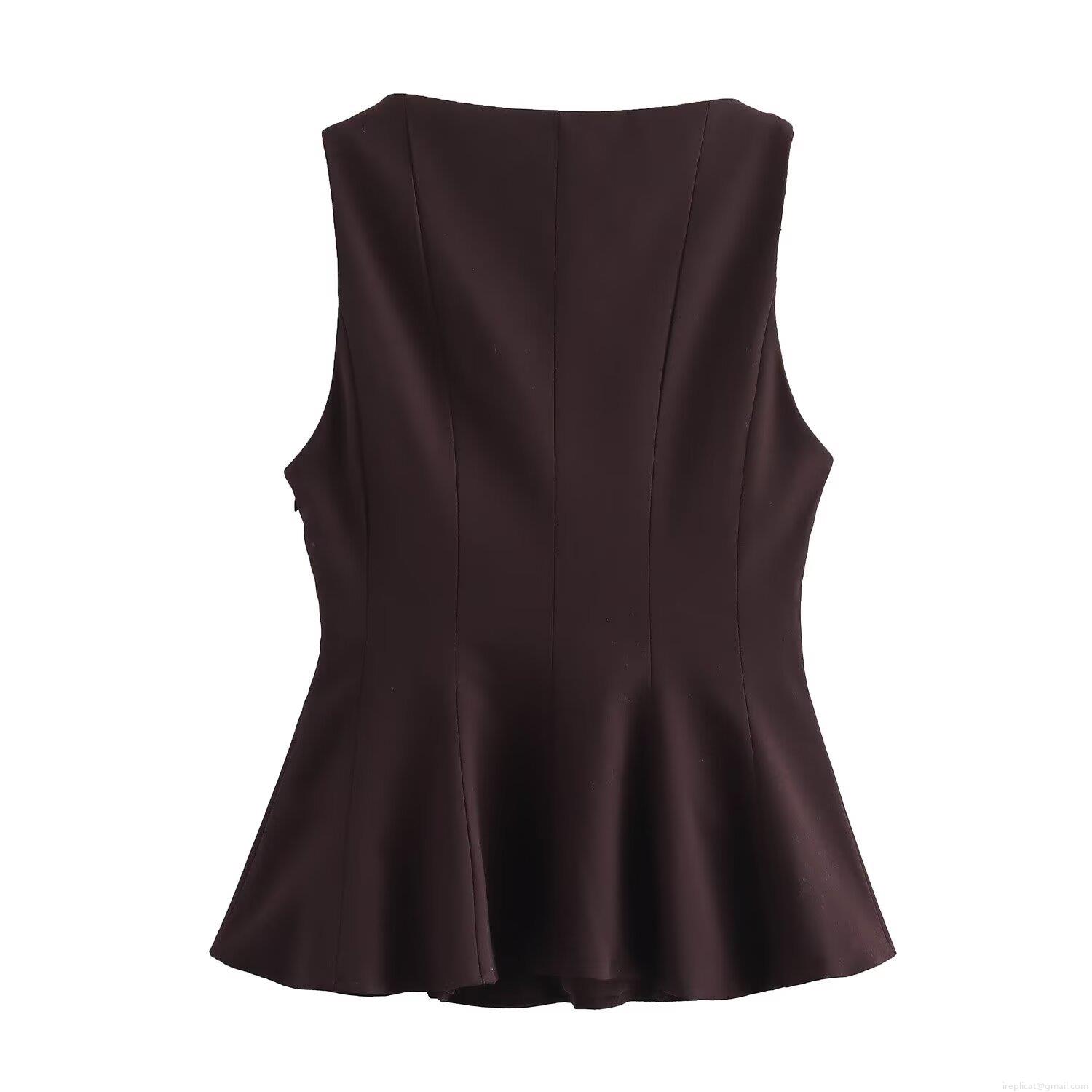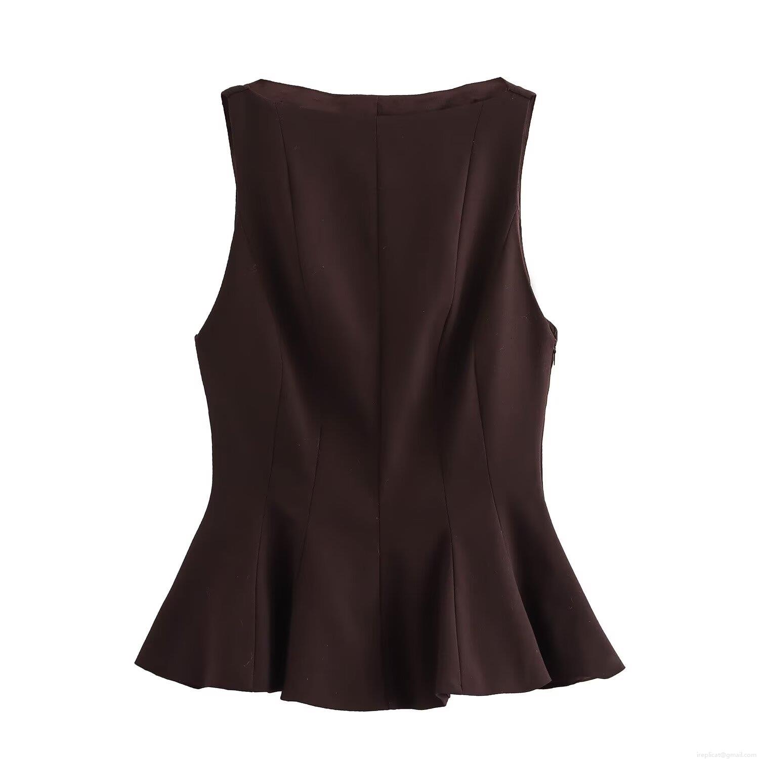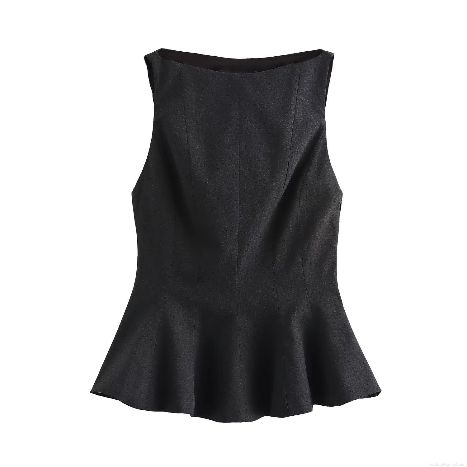 • Women's Sleeveless Peplum Top Solid Color Round Neck Ruffle Hem Polyester Blouse For Office Party Streetwear Ladies Clothing
