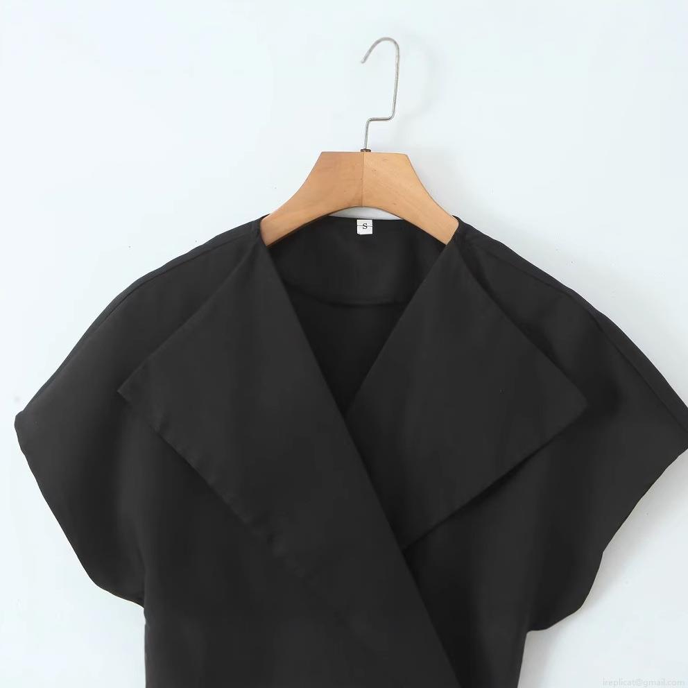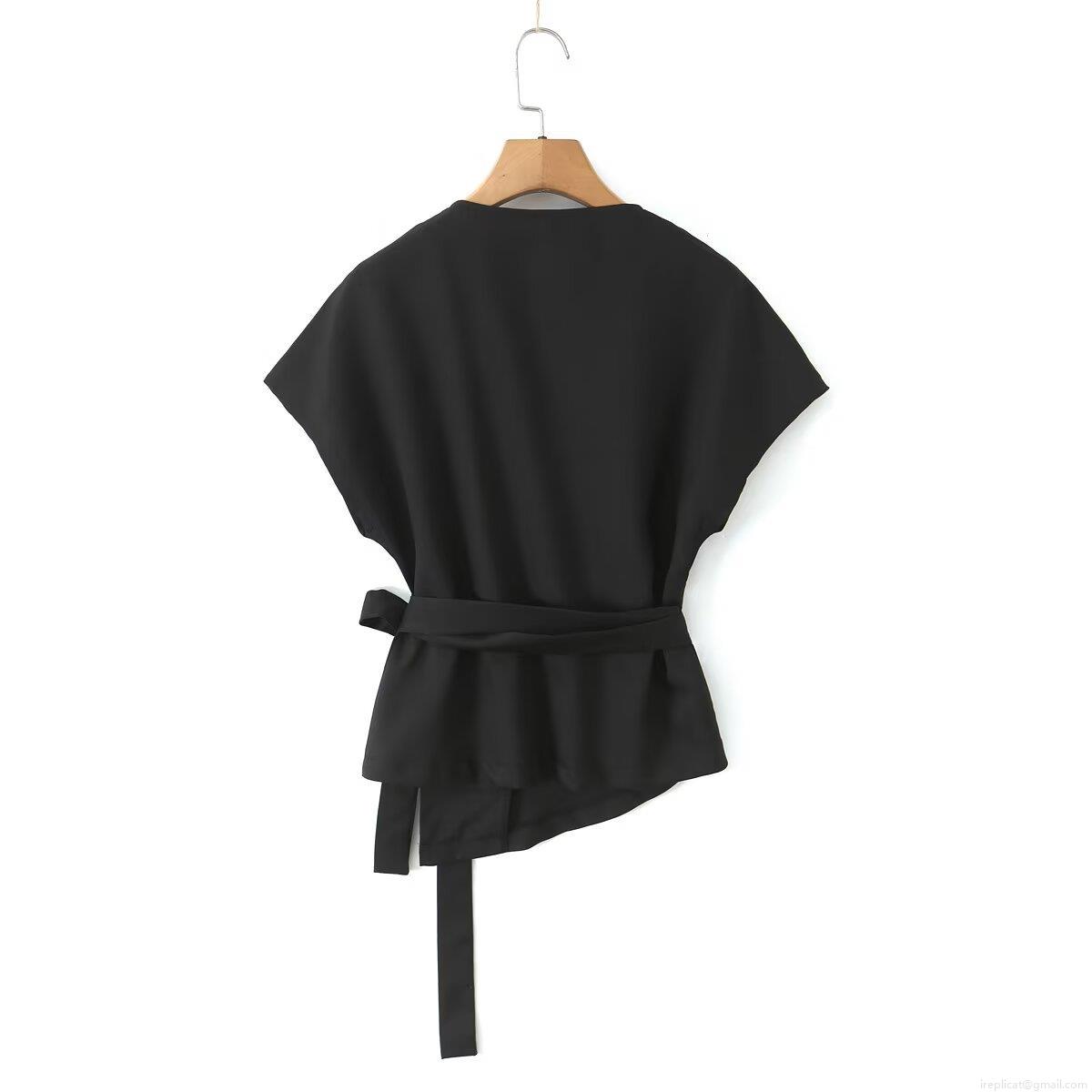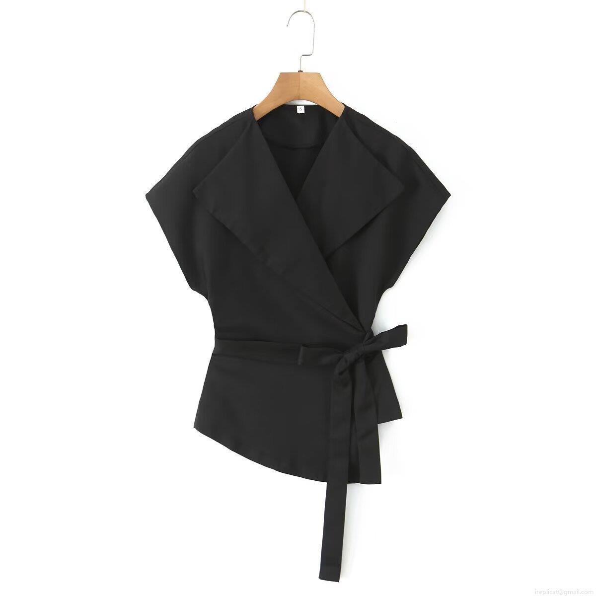 • Women's Sleeveless V Neck Blouse Polyester Woven Large Lapel Wrap Tie Waist Summer Fashion Solid Color Slim Fit Streetwear Office Casual Top