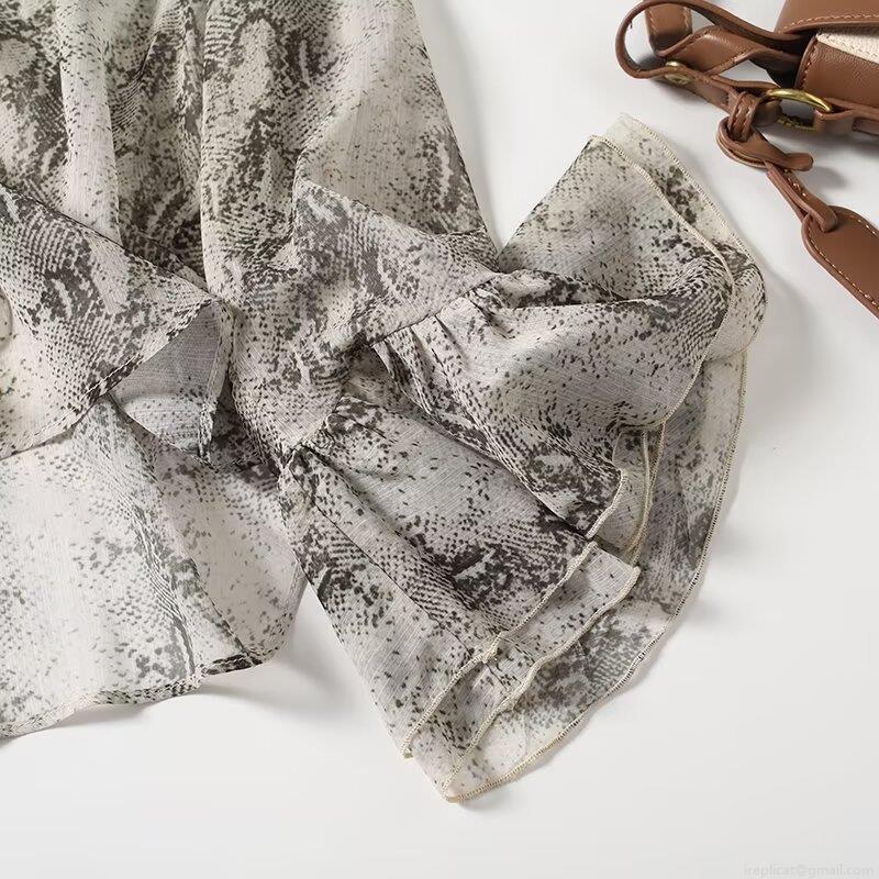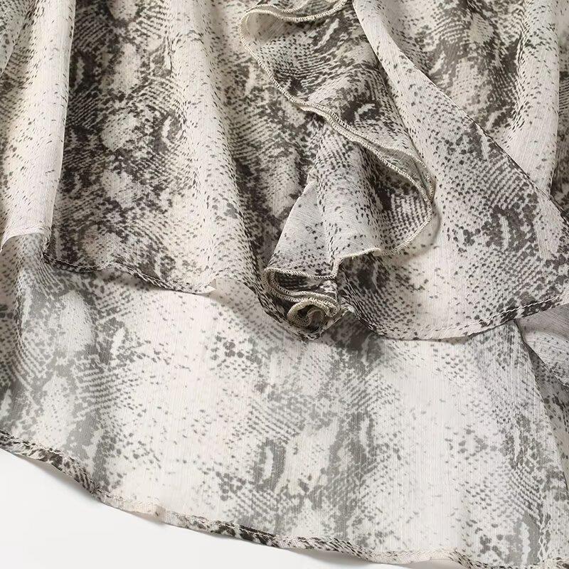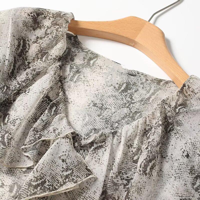 Snake Pattern, Ruffles, Printing, V-neck, Stacked