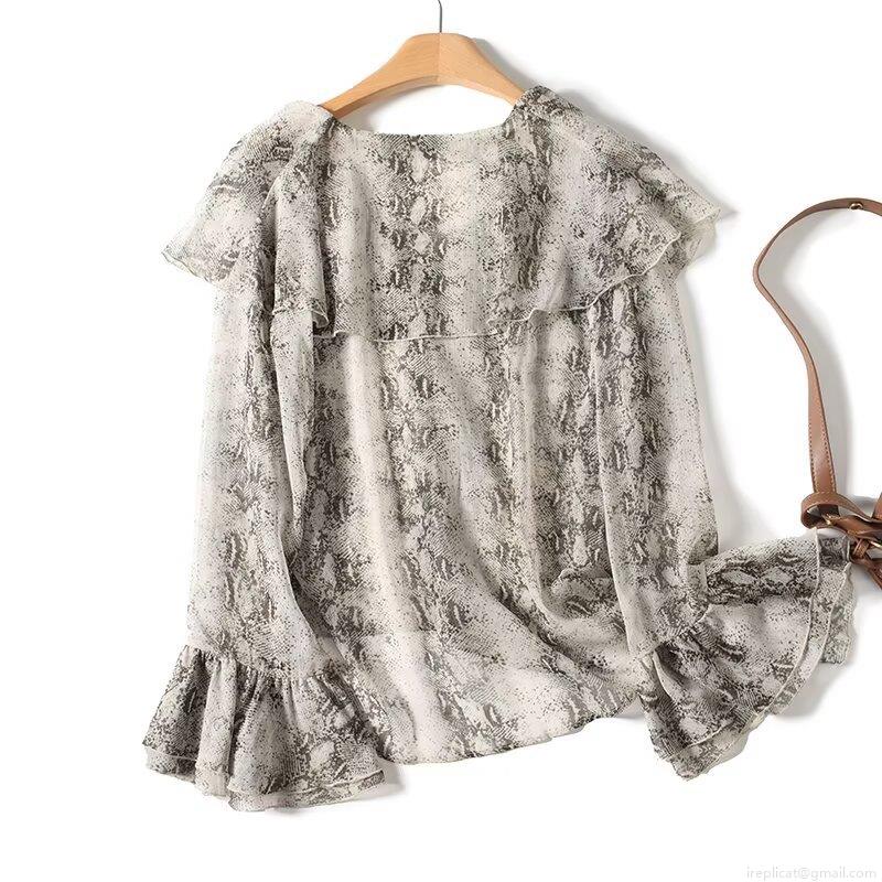 • Women's Snake Skin Print Chiffon Blouse Elegant V Neck Ruffle Long Sleeve Shirt Lightweight Loose Casual Tops