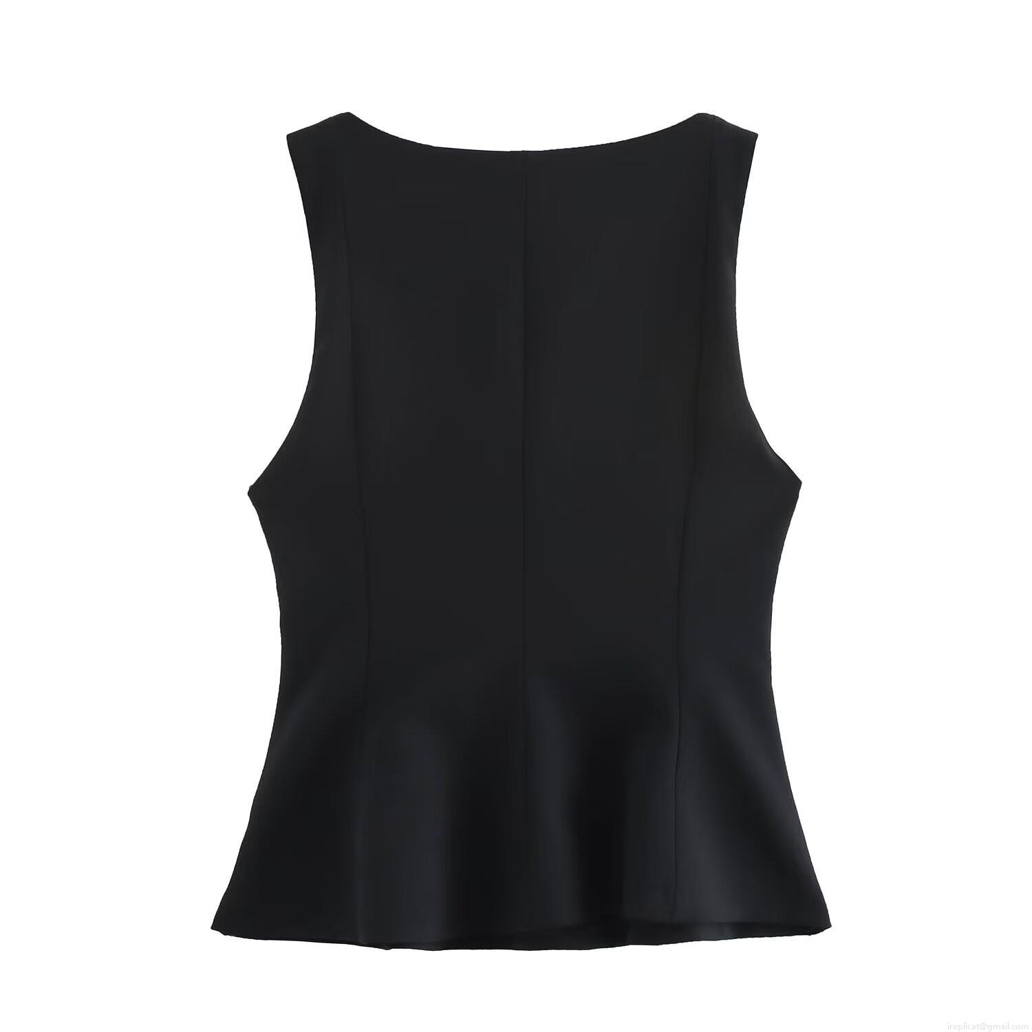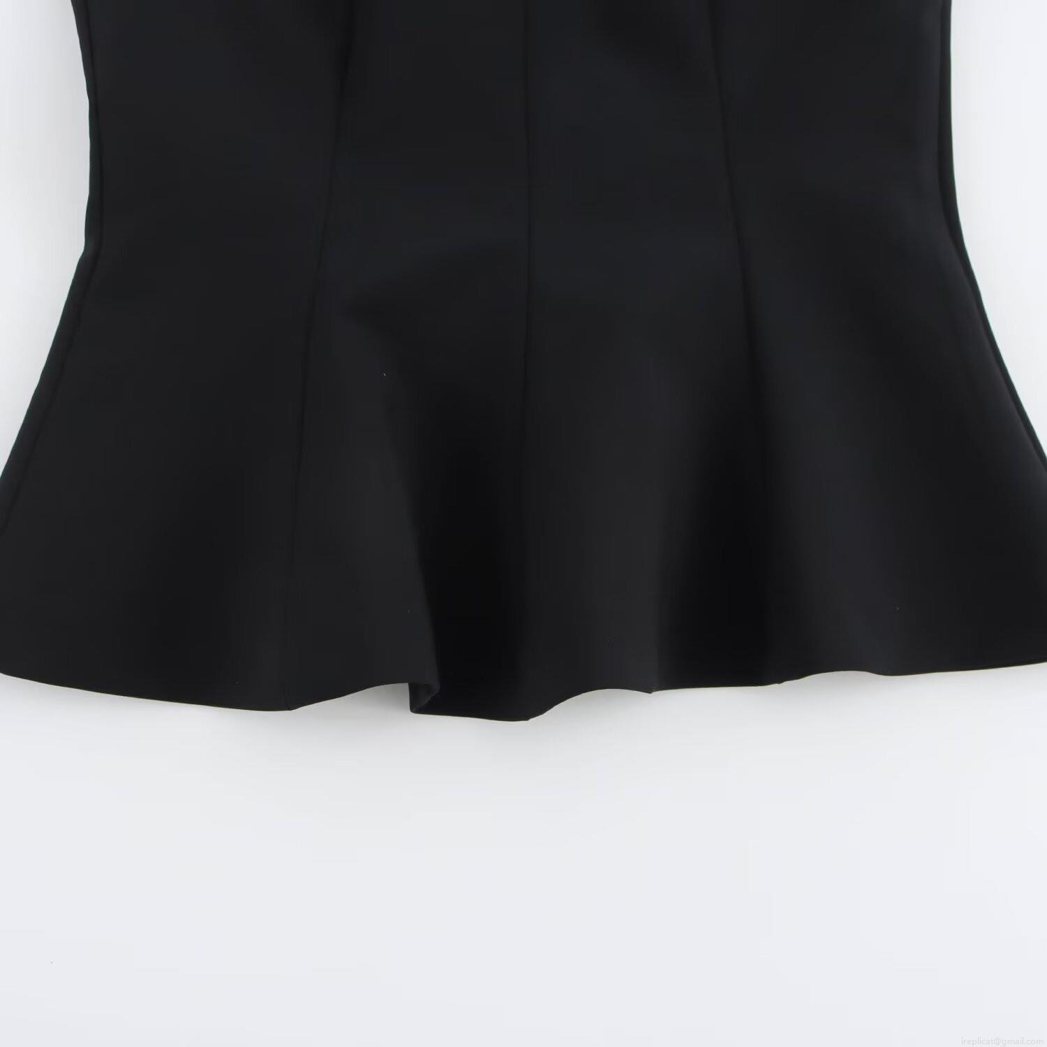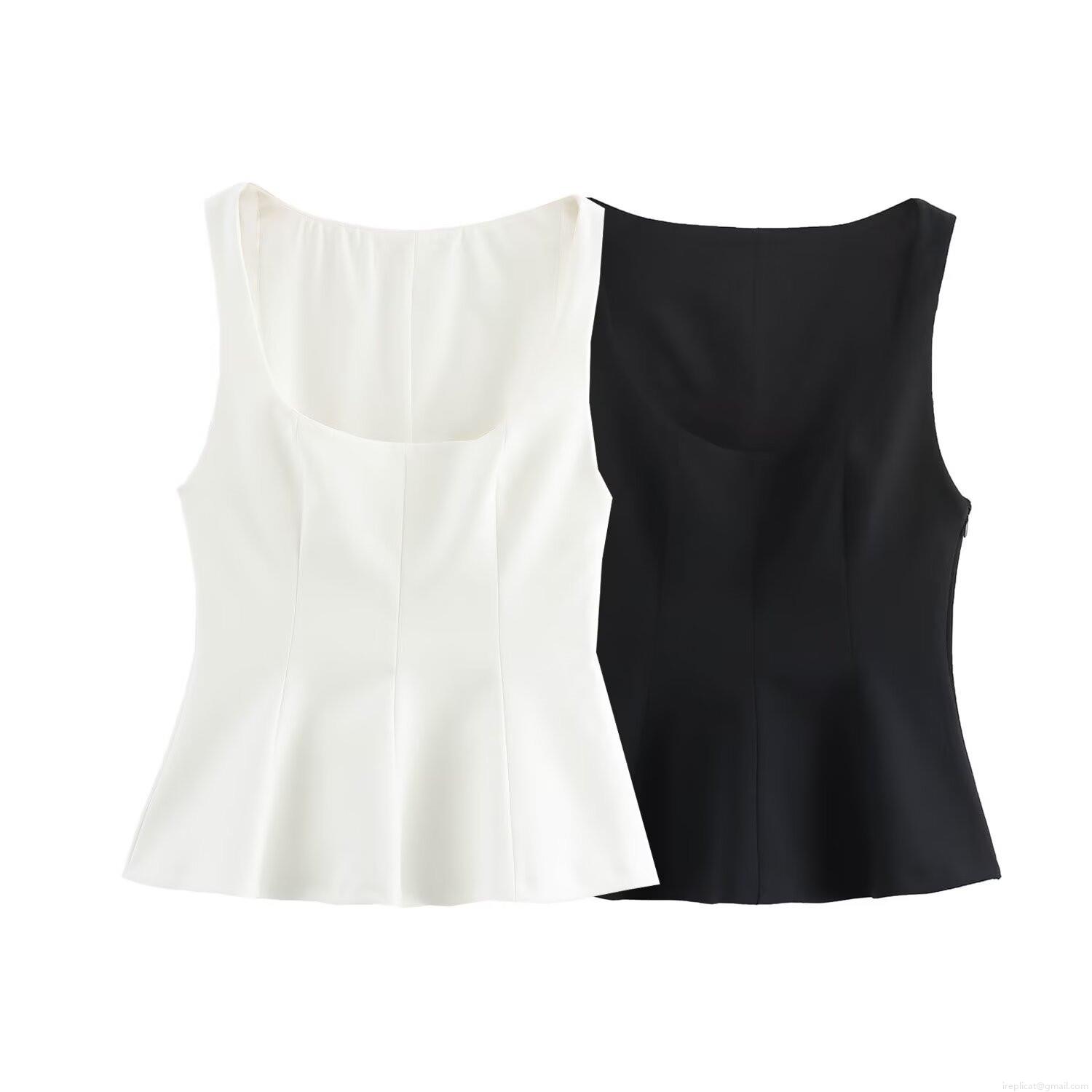 • Women's Square Neck Peplum Top Sleeveless Polyester Spandex Slim Fit Ruffle Hem Tank Top For Casual Daily Wear Elegant Style