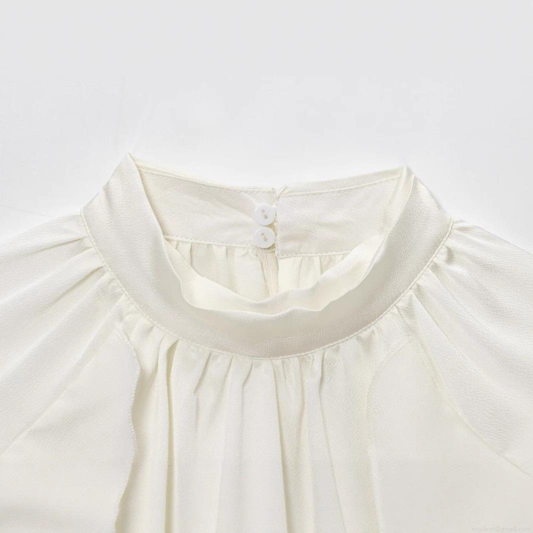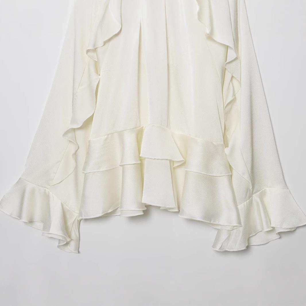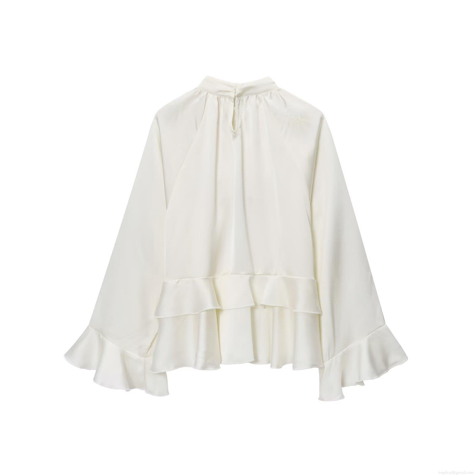 • Women's Stand Collar Ruffle Trim Long Flare Sleeve Satin Blouse Elegant Solid Color Office Work Shirt Streetwear Pullover Top